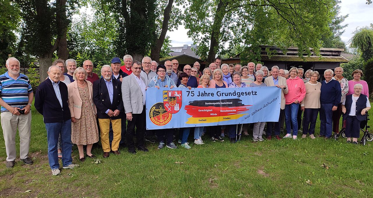 Zu Beginn der Veranstaltung stellten sich die 56 anwesenden Mitglieder der Kameradschaft geschlossen hinter das Banner "75 Jahre Grundgesetz". Mit einem üppigen Grillbuffet, toller Stimmung und guten Gesprächen klang der gesellige Nachmittag aus.