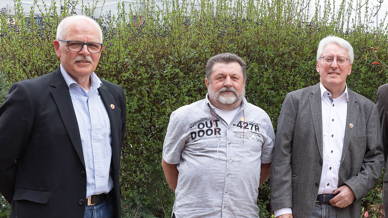 Der Vorsitzende, Oberstabsfeldwebel a.D. Frommer (r.), mit zwei Geehrten: Oberfeldwebel d.R. Feist und Hauptmann a.D. Eidenschink. Foto: KERH Trier u. Umgebung