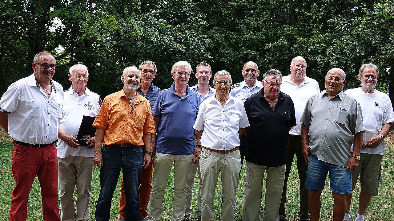 Die selbständige Kameradschaft ERH Tuttlingen mit Mitgliedern aus den Standorten Donaueschingen, Immendingen, Spaichingen und Neuhausen traf sich zu ihrer jährlichen Mitgliederversammlung mit anschließendem Grillfest im ehemaligen Offiziersheim des Flugplatzes Neuhausen. Unter den über 40 Teilnehmern nahmen dieses Mal auch zahlreiche vertraute Kameraden mit ihren Ehefrauen teil, die nach langer Zeit der Abwesenheit erneut den Kontakt zur Kameradschaft suchten. Um wieder mehr Ehemalige für die gemeinsamen Veranstaltungen der Kameradschaft zu interessieren, präsentierte Vorsitzender Oberstleutnant a.D. Klaus Willmes zunächst seine Ideen für künftige Veranstaltungen. Über die neue Geschäftsstelle des DBwV in Berlin und Auswirkungen auf die Verbandsarbeit berichtete der Justitiar des Verbandes, Major d.R. Christian Sieh, und Landesvorsitzender Gerhard Stärk brachte die Anwesenden auf den aktuellen Sachstand zu den aktuellen Herausforderungen des DBwV. Die Vorsitzenden Stärk und Willmes bedankten sich für engagierte Arbeit im DBwV:
