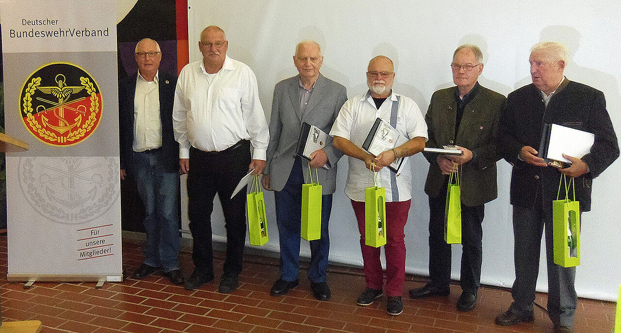 Auf der Mitgliederversammlung der Kameradschaft ERH Ulm/Neu-Ulm im Oktober stellte Frau Middeke den Sozialdienst der Bundeswehr mit seinen Aufgaben vor. Sie informierte die 110 Teilnehmer über mögliche Hilfestellungen, die der Sozialdienst auch ehemaligen Soldaten und ihren Angehörigen gewährt. Der Vorsitzende der Kameradschaft, Stabsfeldwebel a.D. Heiko Schmidt, ehrte folgende Kameraden für ihre langjährige treue Mitgliedschaft: Oberstabsfeldwebel a.D. Jürgen Dengel (40 Jahre), Oberfeldwebel d.R. Dieter Lorenz, Obermaat d.R. Wilhelm Kreutzer und Stabsfeldwebel a.D. Robert Hacker (jeweils für 50 Jahre) sowie Stabsfeldwebel a.D. Konrad Dreier (60 Jahre).