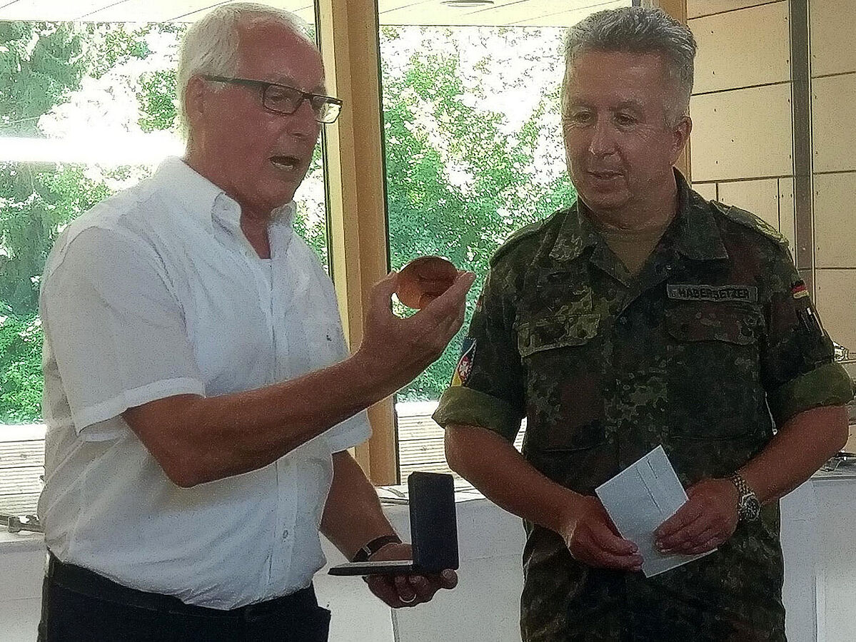 Mit personeller Unterstützung vom Sanitätsregiment 3 hat die Kameradschaft ERH Ulm/Neu-Ulm das diesjährige Sommerfest in den Räumen der OHG in der Rommelkaserne in Dornstadt ausgerichtet.Nach der Ehrung zahlreicher Kameraden für 50- und 60-jährige Mitgliedschaft im DBwV durch den Kameradschaftsvorsitzenden Stabsfeldwebel a.D. Heiko Schmidt informierte Bezirksvorsitzender Oberstabsfeldwebel a.D. Harald Lott über den aktuellen Stand der Umsetzung von Forderungen des DBwV an Politik und militärische Führung. Lott hob die Kontinuität der Zusammenarbeit mit der Verteidigungsministerin hervor, bemängelte aber zugleich die ausbleibenden Fortschritte zur Herstellung der vollen Einsatzbereitschaft der Bundeswehr. Vieles sei auf den Weg gebracht oder noch in der Diskussion, aber Verbesserungen seien in der Truppe selten sichtbar. Fragen zur Materialbeschaffung, zur Trendwende Personal mit den Themen wie Altersgrenzen für die Zurruhesetzung oder Neuordnung des Laufbahnrechts seien noch nicht abschließend gelöst.Besonderer Gast des Sommerfests war Generalmajor Klaus Habersetzer, stellvertretender Befehlshaber und Chef des Stabes des Multinationalen Kommandos Operative Führung Ulm (MNKdoOpFü). Als Standortältester für Ulm, Dornstadt, Setzingen nimmt Habersetzer gern an den Veranstaltungen des DBwV teil. Er informierte über aktuelle Ereignisse beim MNKdoOpFü, darunter über die erfolgreiche Übung „Trident Jaguar 2018“ im norwegischen Stavanger, bei der sich das Ulmer Kommando als Hauptquartier zur Führung von EU- oder NATO-Operationen qualifizierte. Dies bedeute u.a. für die Soldaten des Kommandos, sich bis zu einem halben Jahr für einen solchen Einsatz in Bereitschaft zu halten.Habersetzer stellte zudem heraus, dass der Standort Ulm mit der zusätzlichen Aufstellung des „Joint Support And Enabling Command (JSEC)“ mit mehr als 100 Soldaten stark aufgewertet werde. Dazu seien bis zur Herstellung der vollen Führungsfähigkeit die infrastrukturellen Voraussetzungen zu schaffen.Mit dem JSEC werde eine Kommandozentrale für den schnellen Truppen- und Materialtransport innerhalb Europas etabliert. In vorangegangenen Übungen mit unseren Alliierten habe sich ein solches Führungselement als unverzichtbar erwiesen, zumal Deutschland als Host Nation bei einer möglichen Verteidigung Nord-Ost-Europas eine besondere Rolle zukomme, so Habersetzer.Kameradschaftsvorsitzender Schmidt dankte abschließend unter anerkennenden Beifall aller Anwesenden Generalmajor Habersetzer für seinen Einsatz und die Unterstützung der Verbandsarbeit mit der Ehrenmmedaille des DBwV. Schmidt verabschiedete Habersetzer mit guten Wünschen für seine neue Verwendung als Kommandeur Zentrale Luftoperationen in Kalkar, die er ab September diesen Jahres antreten werde.