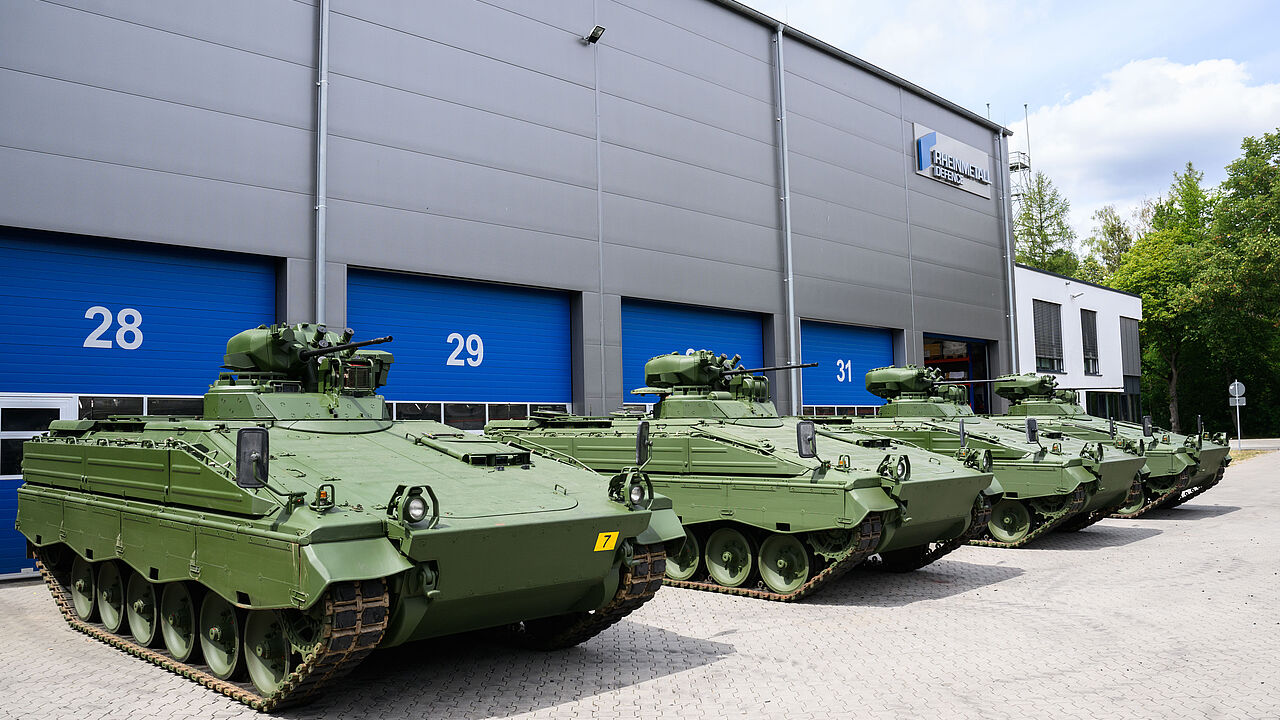 Aufbereitete Marder-Schützenpanzer der Bundeswehr stehen bei Rheinmetall für den Export in die Ukraine bereit. Die Bundesregierung hat die Lieferung dieser Waffen bisher jedoch nicht genehmigt. Foto: picture alliance/dpa | Julian Stratenschulte