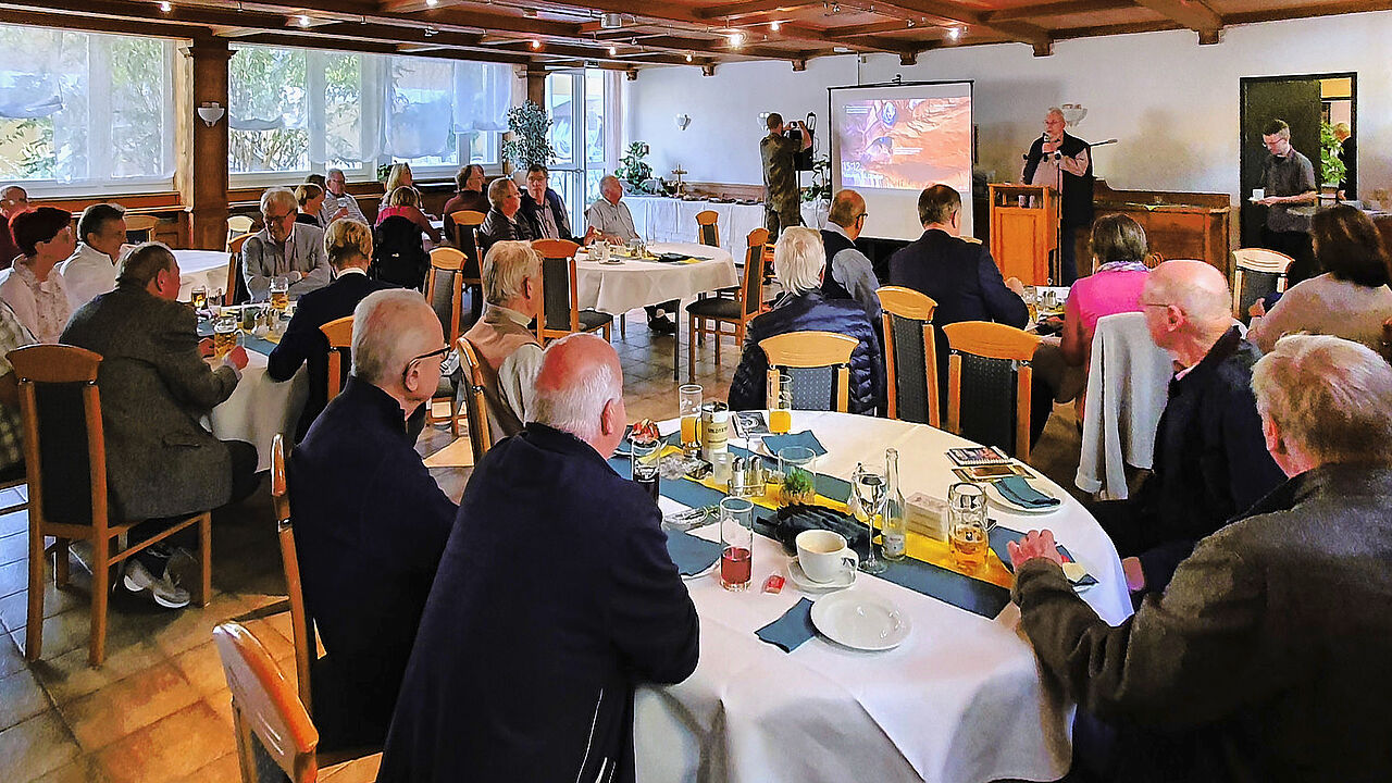 Vor den Ehrungen widmeten sich die Mitglieder der Kameradschaft ERH Würzburg/Veitshöchheim in ihrer Versammlung dem neuen Angebot der „Pflege-Assistance“ des BundeswehrVerbandes. Nach der Begrüßung der zahlreichen Mitglieder und Gäste im Casino der Balthasar-Neumann-Kaserne, darunter der ehemalige Standortälteste, Brigadegeneral a.D. Ernst-Otto Berk, sowie der Veitshöchheimer Altbürgermeister Rainer Kinzkofer, übergab Vorsitzender Feldwebel d.R. Siegbert Schneider dem Vorsitzenden ERH im Landesvorstand das Wort. Oberstabsfeldwebel a.D. Bernhard Hauber informierte über Vorteile der „Pflege-Assistance“ und berichtete von ersten guten Erfahrungen bei der Nutzung der „Pflege-Assistance“.