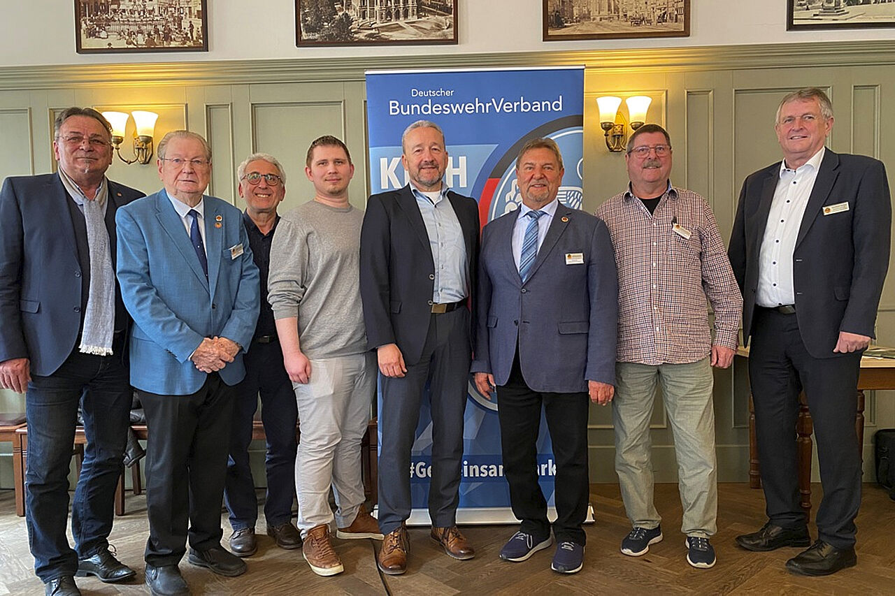 Der verjüngte Vorstand der KERH Augsburg unter Führung von Stabsfeldwebel a.D. Michael Lipp (3. von rechts) und dem neuen Stellvertreter Oberstleutnant a.D. Frank Großmann (4. von rechts) geht gestärkt in die neue Wahlperiode. Foto: li