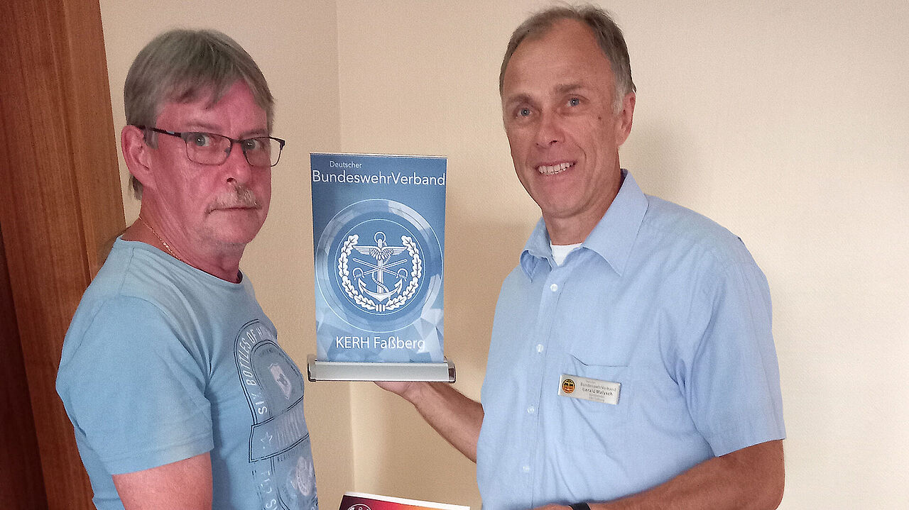Faßberg. Bei der vierteljährlichen Mitgliederversammlung der Faßberger Kameradschaft der Ehemaligen, Reservisten und Hinterbliebenen (KERH) standen Informationen und eine Ehrung auf dem Programm. Der Vorsitzende, Stabsfeldwebel a.D. und Major d.R. Gerald Malysch, zeichnete während der Veranstaltung den pensionierten Oberstabsfeldwebel Bernd Oleschinski für 40 Jahre Treue zum DBwV aus. Der Geehrte war über viele Jahre an der Technischen Schule der Luftwaffe 3 tätig und hat dabei seine Spuren hinterlassen. Er ist bis heute ein sehr bekannter ehemaliger Angehöriger des örtlichen Fliegerhorstes.