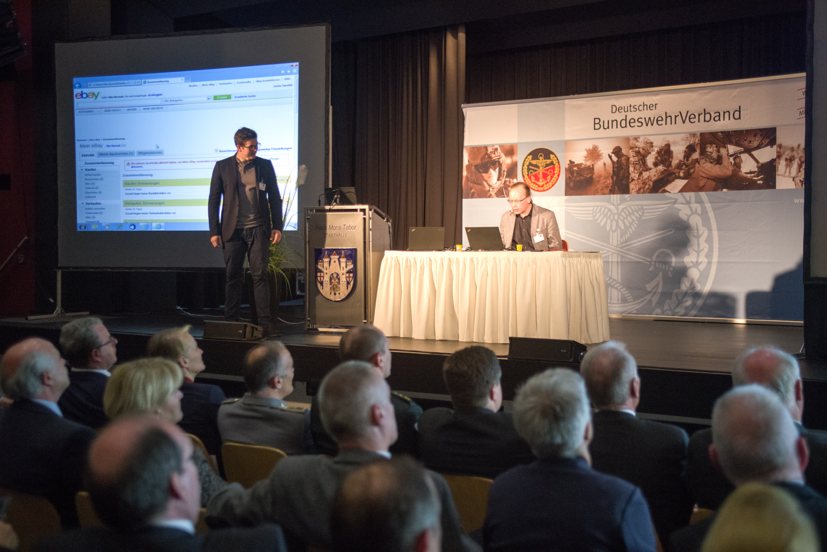 Zum Abschluss des ersten Tags gab es noch anschauliche Beispiele, wie groß die Cyber-Gefahren sind. Zwar zeigte das Unternehmen secunet Security Networks AG nicht auf, wie man eine Fregatte oder einen Rechner im Bereich der Führungsunterstützung hackt, demonstrierte aber eindrucksvoll, welche Gefahren am heimischen PC oder im Smartphone lauern. Am morgigen Samstag, 13. Mai, wird das Sicherheitspolitische Forum fortgesetzt.