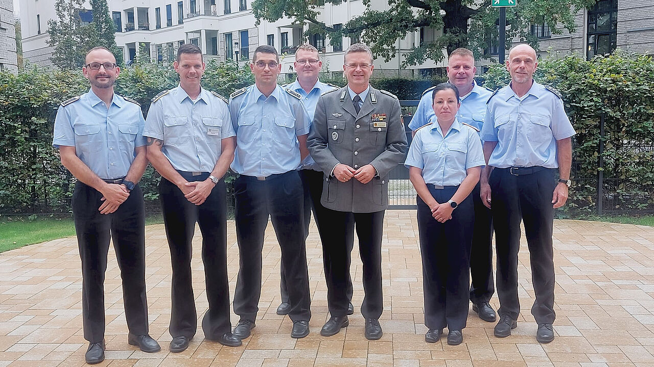 Bundesvorsitzender Oberst André Wüstner mit Mitgliedern der StoKa Wildflecken unter Vorsitz von Hauptmann Frank Kürschner (r.). Foto: Frank Kürschner