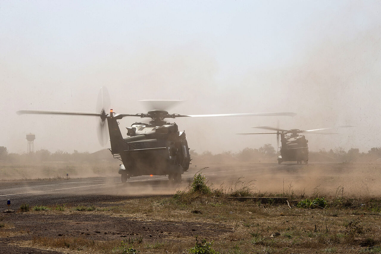 Maschinen vom Typ NH-90 starten in Bamako/Mali. Der Einsatz ist inzwischen der größte Einsatz der Bundeswehr Foto: Bundeswehr