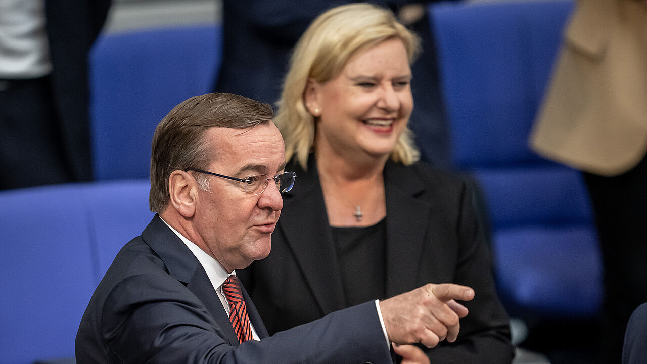 Verteidigungsminister Boris Pistorius und die Wehrbeauftragte Eva Högl im Bundestag: Über den Jahresbericht wurde heute debattiert. Foto: Picture alliance/Michael Kappeler