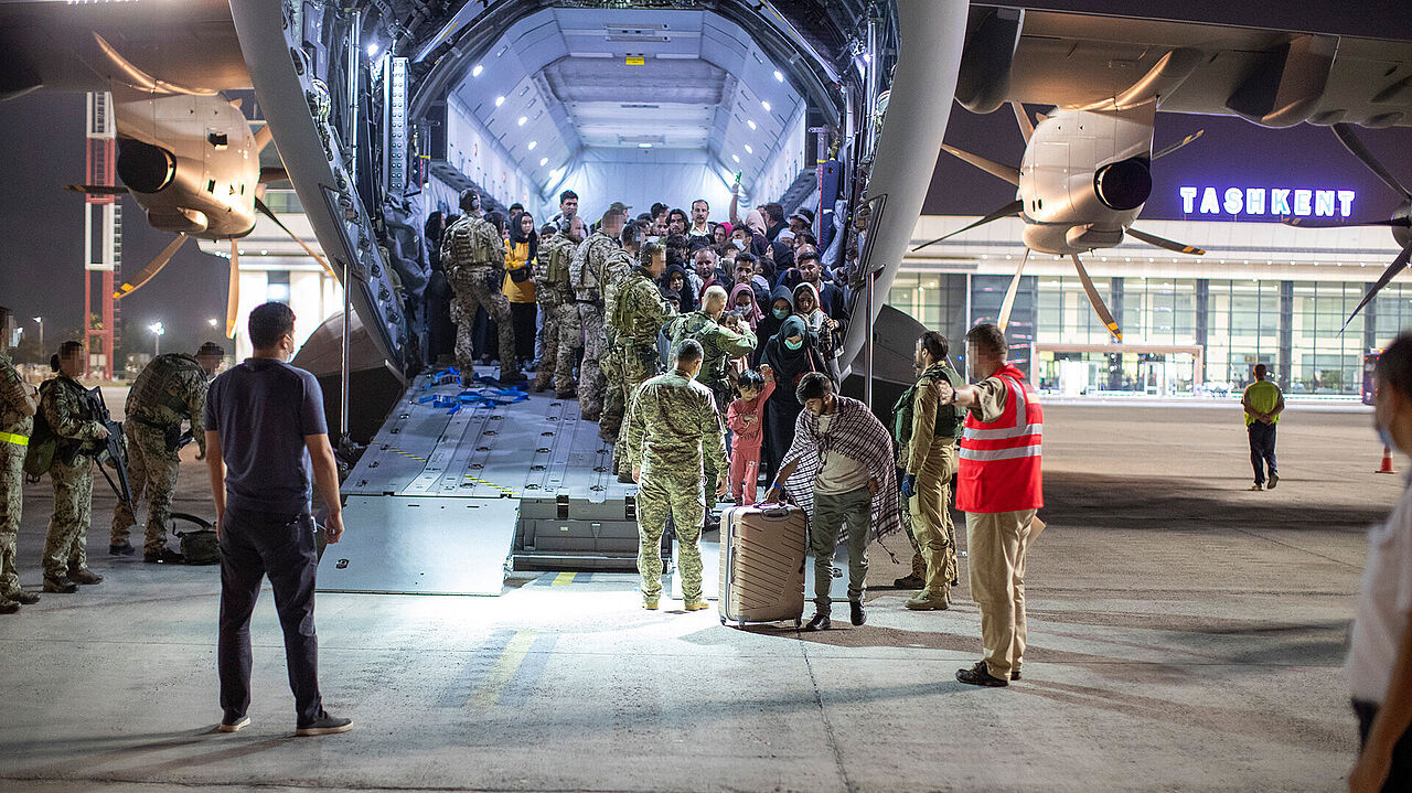 Um 22.00 Uhr MESZ ist der um 20.35 Uhr MESZ in Kabul gestartete #A400M mit 20 evakuierten Menschen an Bord auf dem Flughafen in Taschkent gelandet. Damit wurden bisher insgesamt 2.134 schutzbedürftige Personen von der der #BundeswehrimEinsatz aus Afghanistan ausgeflogen. pic.twitter.com/QkJK03Vigj— Bundeswehr im Einsatz (@Bw_Einsatz) August 21, 2021