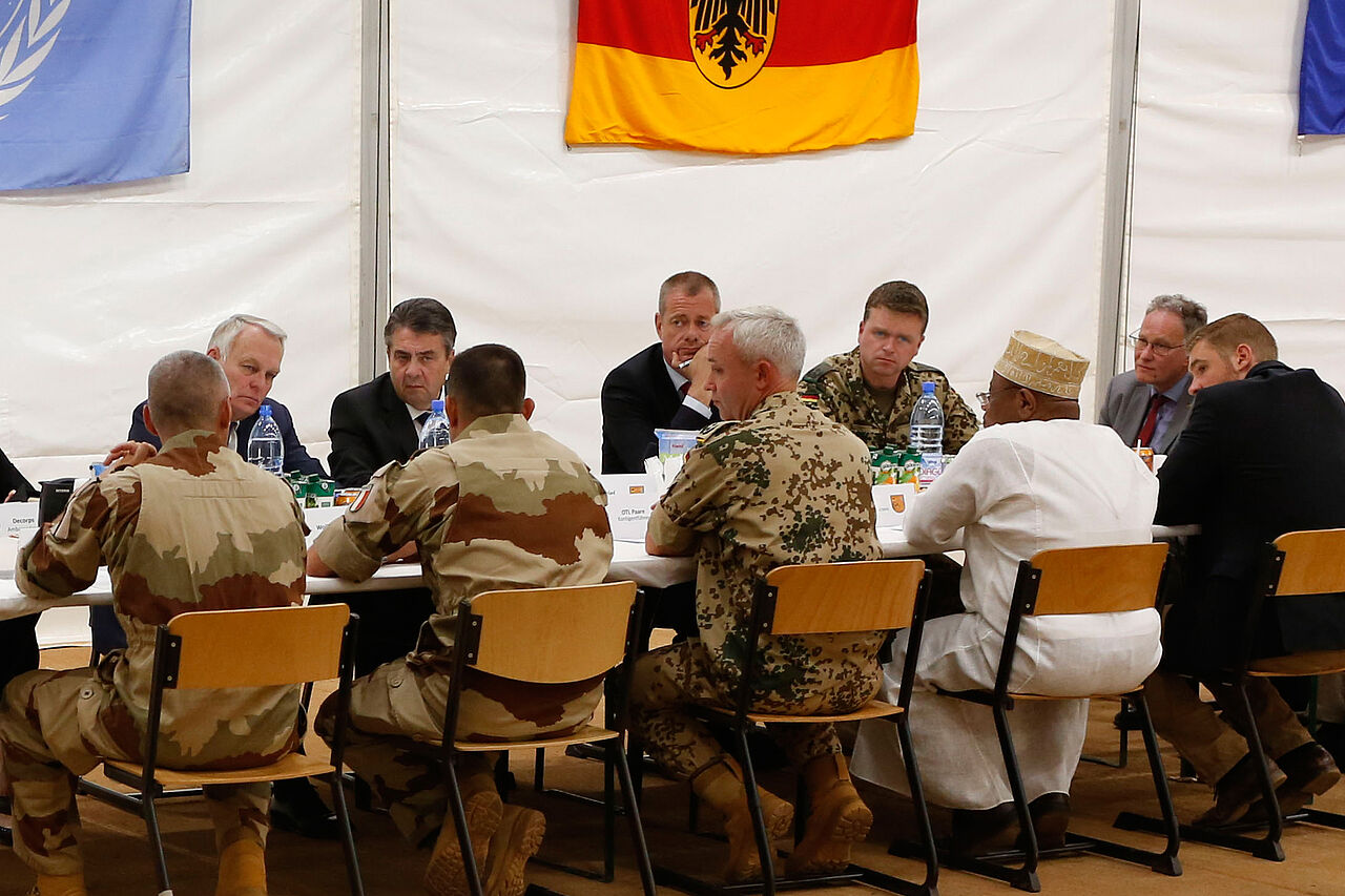 Außenminister Sigmar Gabriel (hintere Reihe, 2. vl.) mit dem DBwV-Bundesvorsitzenden André Wüstner beim Besuch in Mali Foto: DBwV