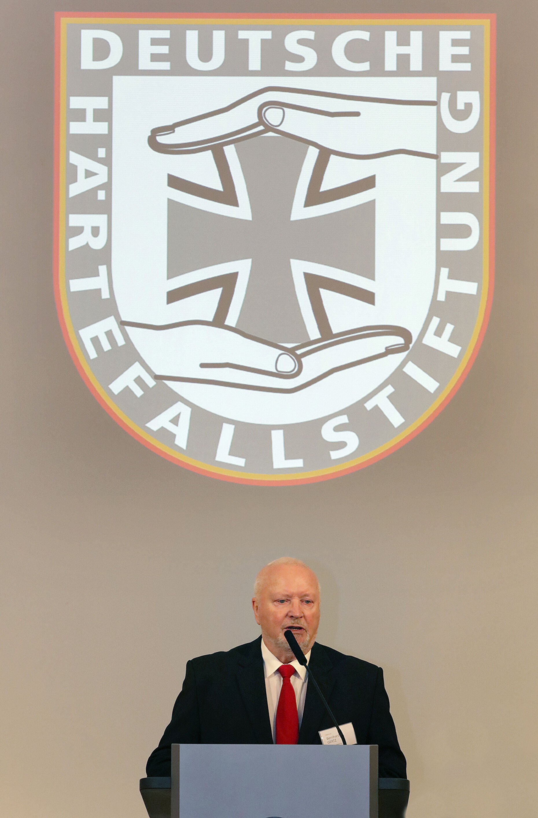 Auch der DBwV-Bundesvorsitzende, Oberst André Wüstner, lobte die Härtefallstiftung in seiner Rede für ihren unermüdlichen Einsatz. Wüstner wurde in diesem Jahr zum Vorsitzenden des Stiftungsrats der Deutschen Härtefallstiftung gewählt. Die Gründung der Härtefallstiftung ist auch ein Erfolg des DBwV, der immer wieder auf die Lücken im Versorgungssystem hingewiesen hatte – damals insbesondere für Radarstrahlengeschädigte.