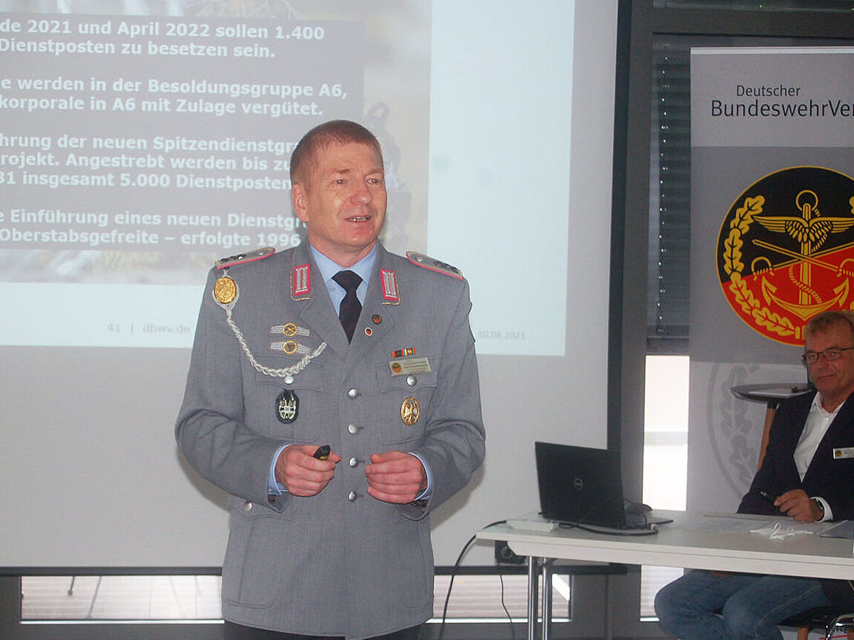Gerd Dombrowski erläutert die aktuelle Verbandspolitik, Forderungen und Erfolge. Foto: DBwV