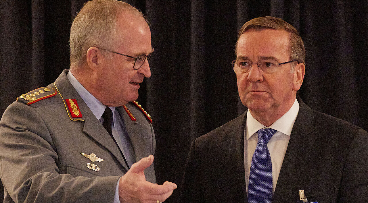 General Eberhard Zorn (l.) mit Verteidigungsminister Pistorius. Die beiden haben sich jetzt gemeinsam an die Streitkräfte gewandt. Foto: picture alliance / ATP photo agency | ERNST Jean-Claude