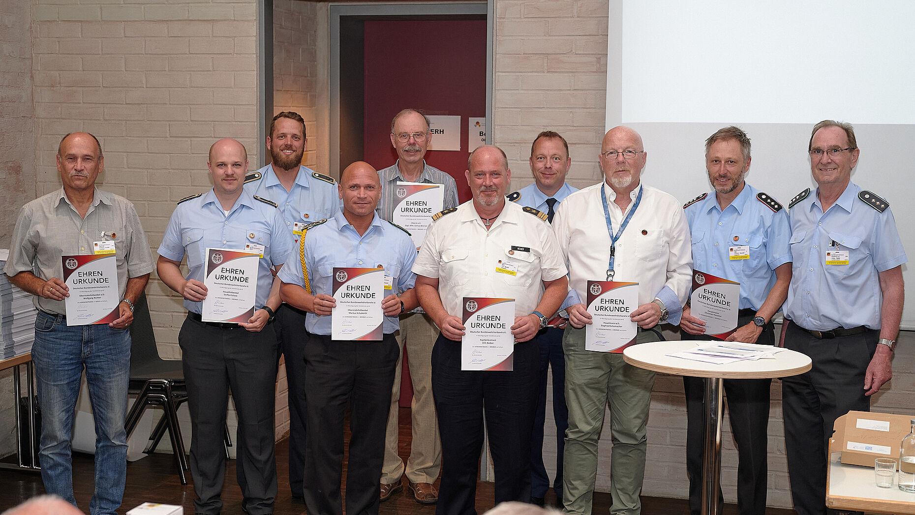 Da es der nach Anzahl der Mitglieder und der Kameradschaften der größte Bezirk im Landesverband ist, war es nicht verwunderlich, dass der scheidende Bezirksvorsitzende bei der Tagung des Bezirks auf der Landesversammlung gleich neun verdienstvolle Mandatsträger mit der Verdienstnadel des DBwV auszeichnete.