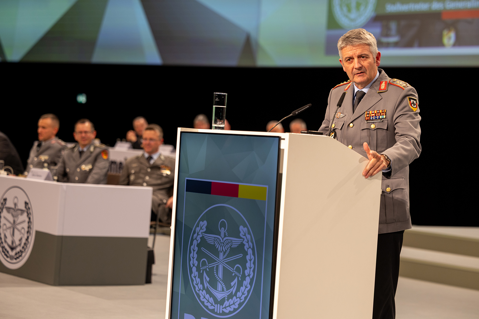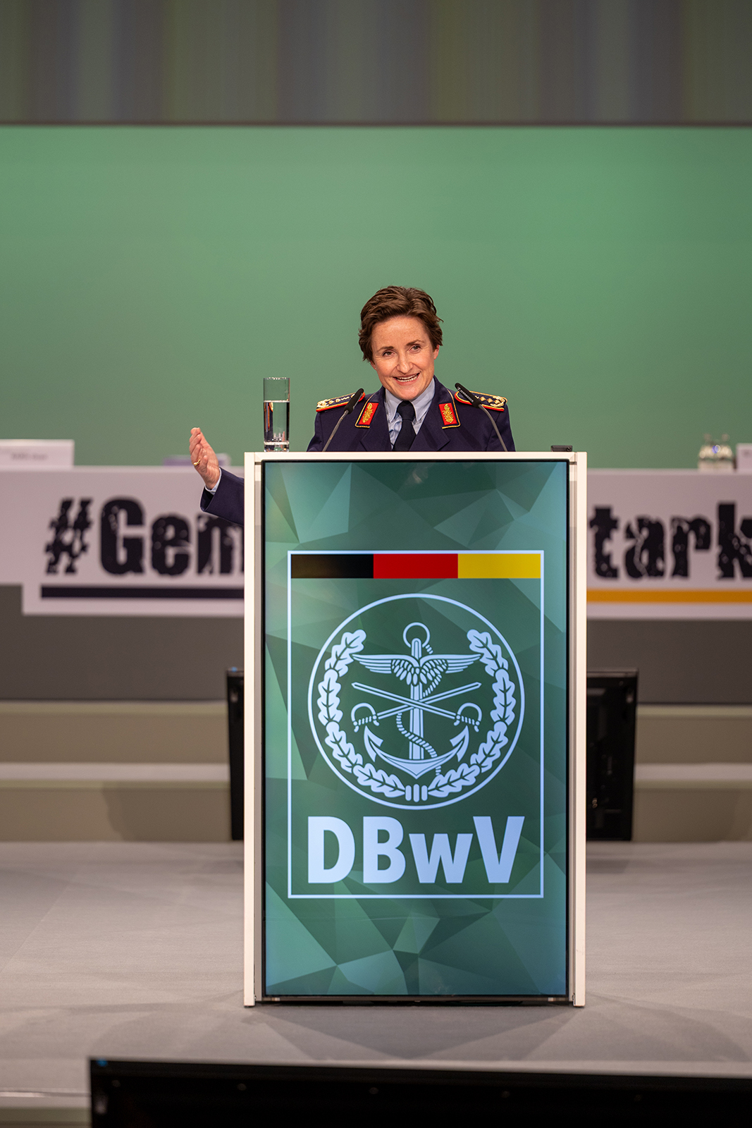 Generaloberstabsarzt Dr. Nicole Schilling, Stellvertreterin des Generalinspekteurs im BMVg, betonte, warum sie dem Verband beigetreten ist: „Wir können im BMVg vom Verband lernen. Wir sind nicht nur Gäste, sondern auch Teil des DBwV. Ich bin mir meiner Mitgliedschaft bewusst. Der DBwV ist zweifellos Brückenbauer, nicht nur zwischen den Statusgruppen, sondern auch zur Gesellschaft und in die Politik. Der Verband legt die Finger in die Wunde, nicht nur zum Selbstzweck, sondern für alle Menschen in der Bundeswehr. Der Verband ist nicht geduldet, sondern geschätzt und explizit erwünscht. Der DBwV ist eine Allzweckwaffe, er ist nicht nur Sprachrohr, sondern auch Sprachmittler.“
