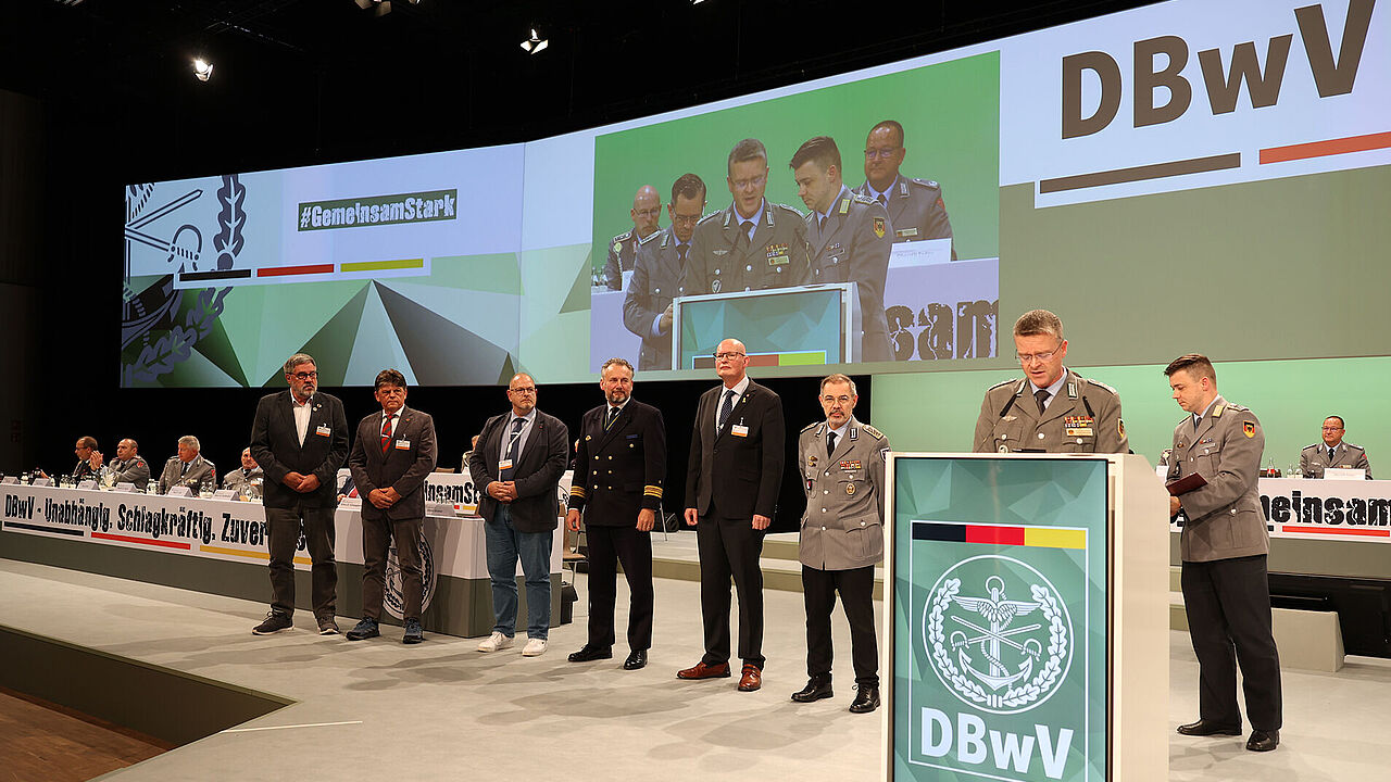 Zum Ende der 22. Hauptversammlung ehrte der Bundesvorsitzende Oberst André Wüstner ganz besonders verdienstvolle und engagierte Mandatsträger für ihre Arbeit und ihren Einsatz für den Deutsche Bundeswehrverband.