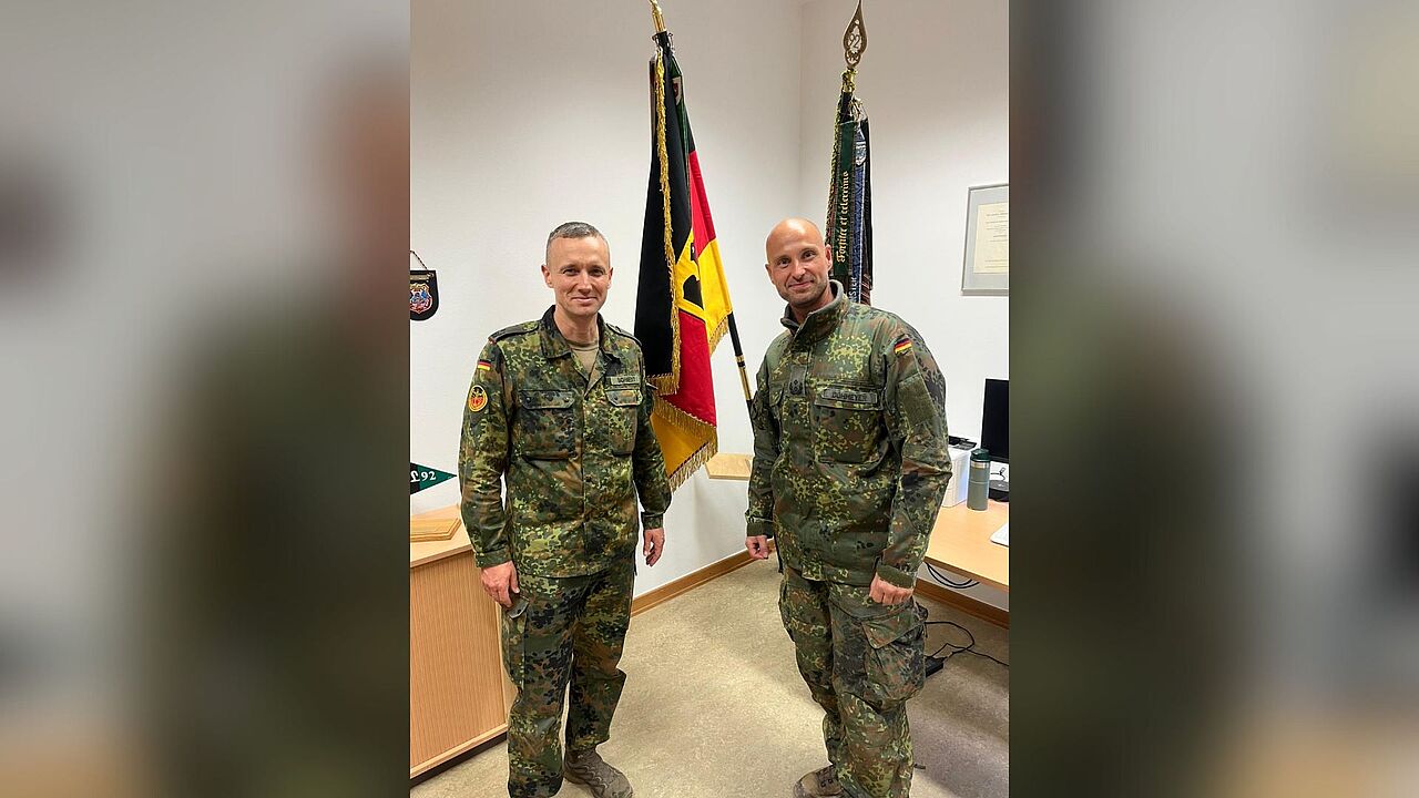 Bohnert und Dohmeyer blicken bereits auf eine gemeinsame  Zeit im Panzergrenadierlehrbataillon zurück: 2011 waren sie als Kompaniechef und Kompanieeinsatzoffizier mit der 2./L92 als Task Force Kunduz für knapp 7 Monate für die Sicherheit im afghanischen Unruhedistrikt Chahar Darreh verantwortlich und haben alle Männer und Frauen ihrer Einheit körperlich unversehrt wieder nach Hause gebracht. „Diese Erfahrungen wirken nach und haben ein Vertrauensverhältnis entstehen lassen, dass auch ein paar Jahre ohne persönliche Treffen überdauert hat", so Bohnert. Bis zur nächsten Begegnung soll es nun allerdings nicht mehr ganz so lange dauern - für 2026 ist bereits ein weiterer Besuch im Bataillon vereinbart.