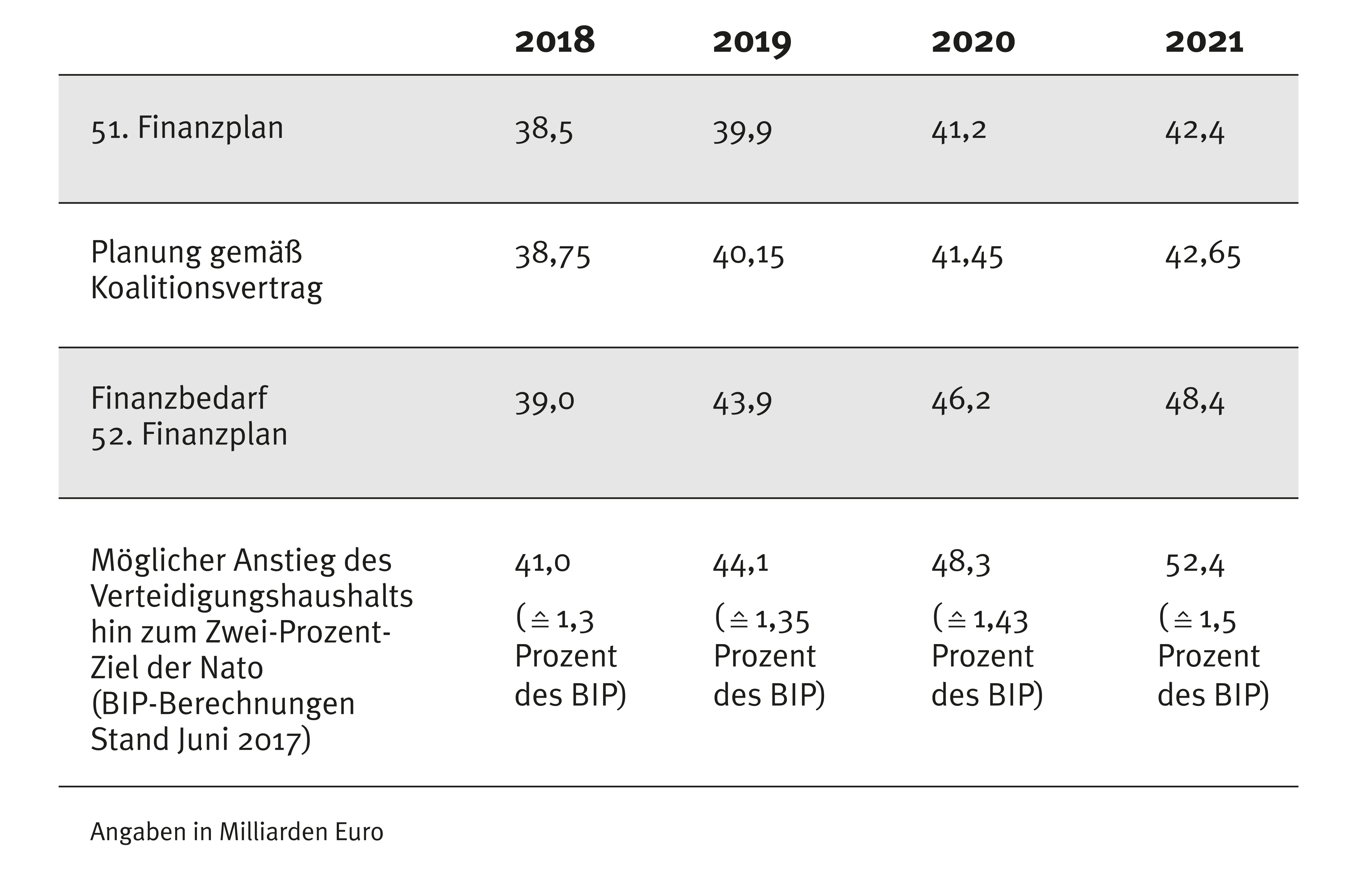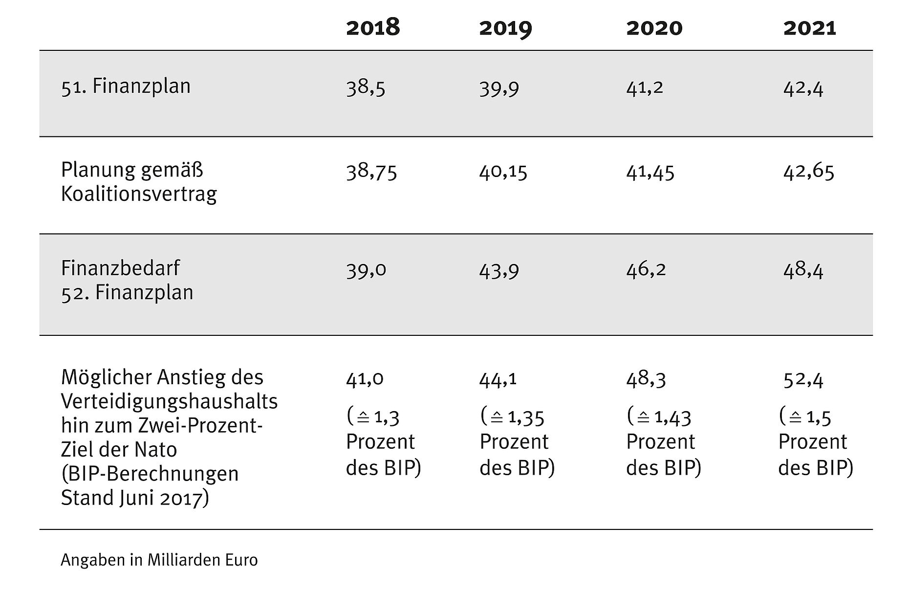 Bekommt die Bundeswehr keine zusätzlichen Milliarden, scheitern die Trendwenden Personal und Material. „Die Menschen der Bundeswehr haben kein Verständnis mehr dafür, wenn der Staat in einer Welt voller Bedrohungen und entsprechend steigender Einsatzbelastung die Mangelverwaltung der Bundeswehr fortsetzen würde“, sagte der Bundesvorsitzende des Deutschen BundeswehrVerbands, Oberstleutnant André Wüstner, zuletzt in der "Welt". Notwendig sei ein „Aufwuchs des Verteidigungshaushaltes um insgesamt 15 Milliarden Euro bis 2021“, so Wüstner.