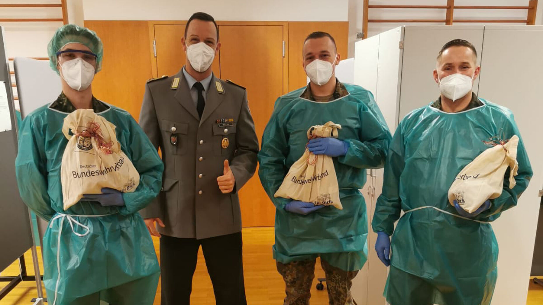 Wie im Vorjahr hat Hauptfeldwebel Stefan Walczak auch 2021 wieder die Uniform gegen das rote Nikolaus-Kostüm getauscht und sich so nahezu unerkannt auf große Mission begeben. Seine ersten beiden Ziele: Das Kommando Territoriale Aufgaben in Berlin und das Einsatzführungskommando der Bundeswehr in Schwielowsee. Dort übergab er den eingesetzten Soldatinnen und Soldaten Geschenke im Namen der Soldaten und Veteranen Stiftung (SVS).