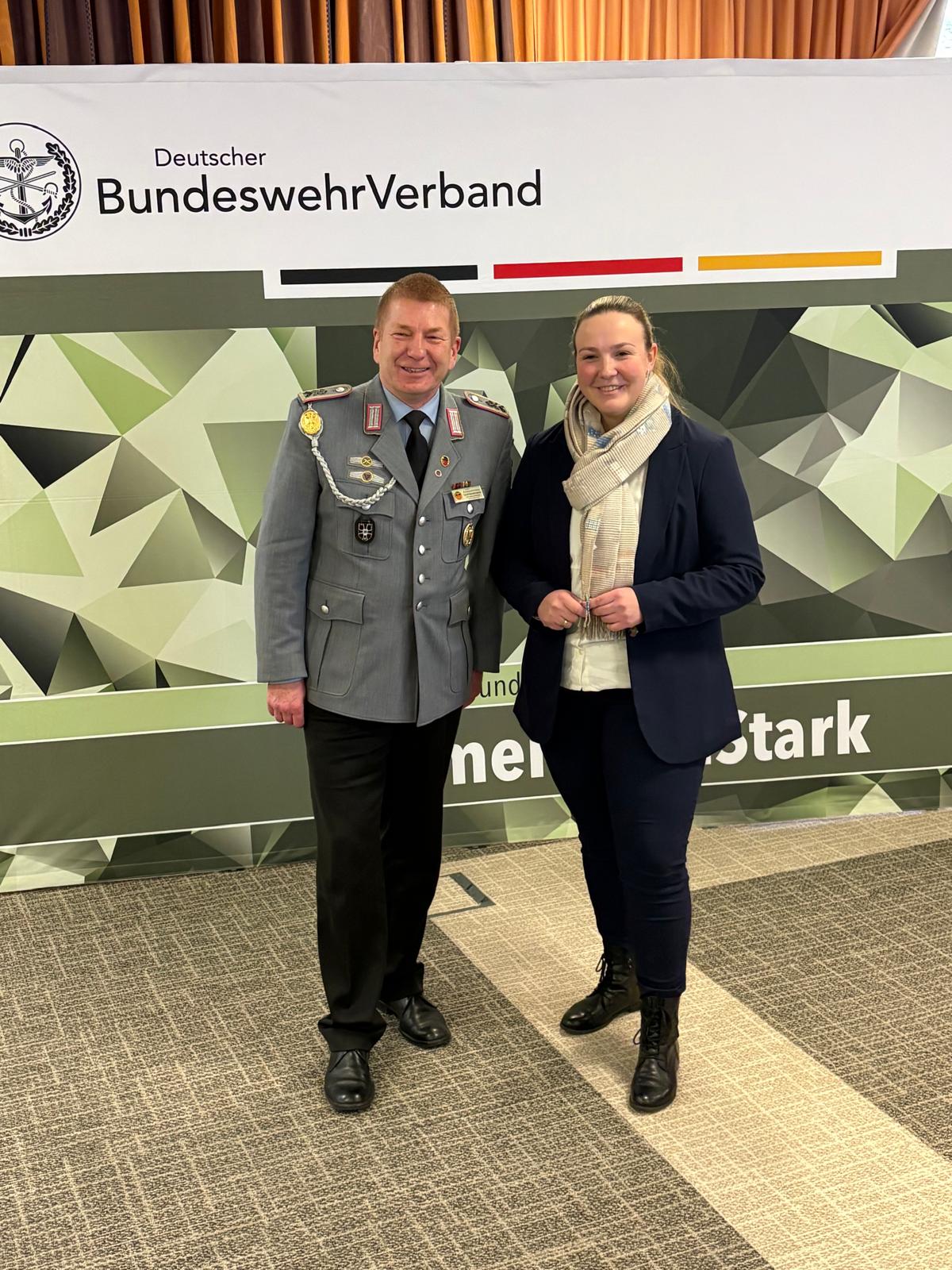 Vivian Tauschwitz suchte das Gespräch mit den Teilnehmern. Die CDU-Politikerin aus dem Wahlkreis Rotenburg I / Heidekreis ist Mitglied des Verteidigungsausschusses sowie in dem für die Angelegenheiten der Europäischen Union. Bis zu ihrem Einzug ins Parlament 2025 leistete die Christdemokratin im Range eines Hauptmanns Dienst in der Heeresaufklärungstruppe, dabei auch in Mali. Sie ist seit ihrem Dienstantritt bei den Streitkräften DBwV-Mitglied. Während ihres Einsatzes in Afrika hatte sie sich als Ansprechpartnerin im Einsatz zur Verfügung gestellt. Dem DBwV fühlt sie sich nach wie vor verbunden.