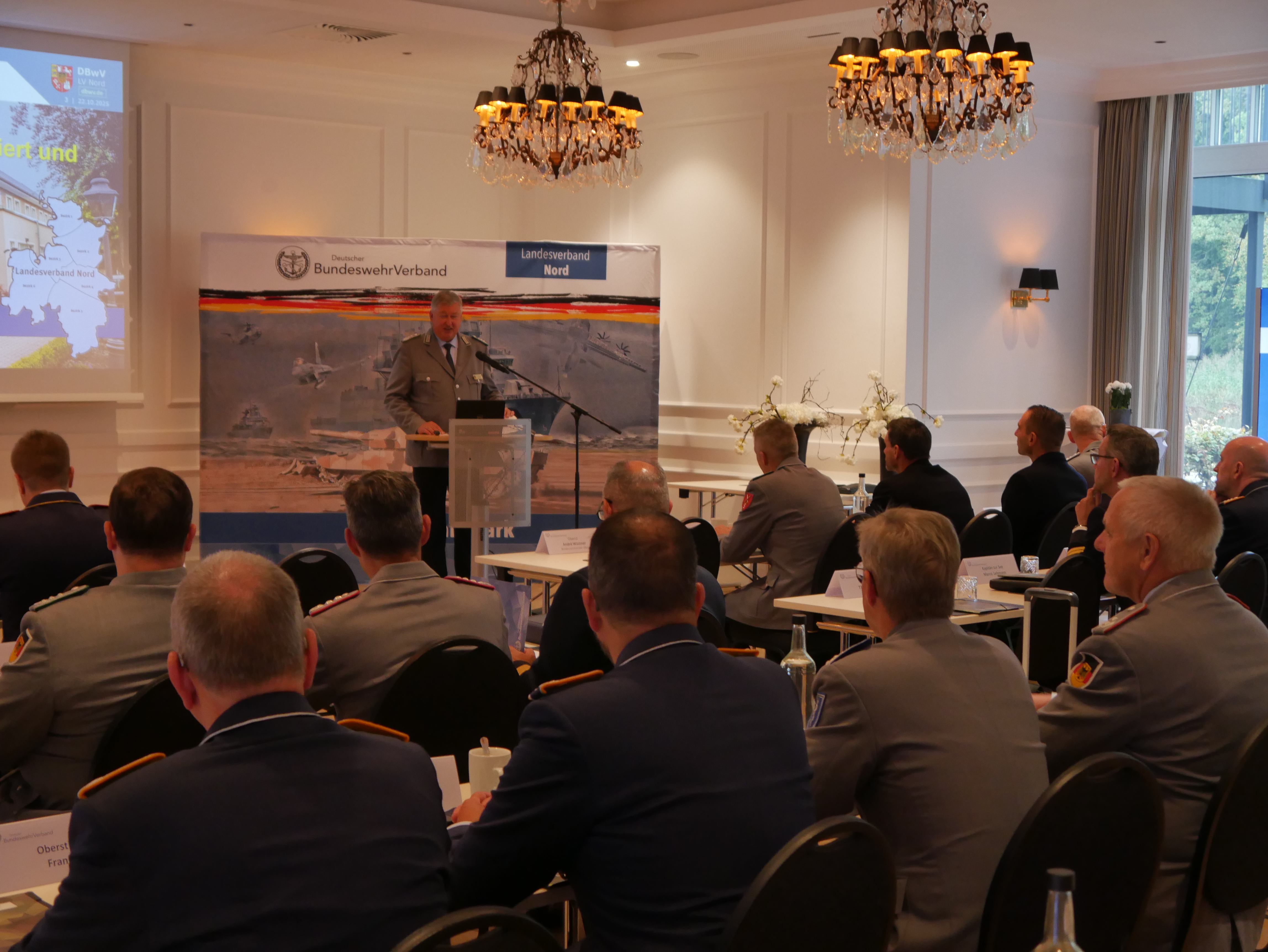 Dötlingen. Im Dötlinger Hotel Gut Altona hat eine Tagung des Landesverbandes Nord mit Kommandeuren und Dienststellenleitern begonnen. Im Mittelpunkt der Veranstaltung stehen verteidigungs- und sicherheitspolitische Themen, darunter ein Vortrag über den Verteidigungsausschuss des Deutschen Bundestages. Darüber hinaus geht es um die aktuelle Verbandspolitik sowie das Versorgungsrecht der Berufssoldaten. Die zweitägige Veranstaltung wird vom Landesvorsitzenden Nord geleitet. Neben Oberst Thomas Behr wird der DBwV-Bundesvorsitzende Oberst André Wüstner zu den rund 50 Teilnehmerinnen und Teilnehmern sprechen.