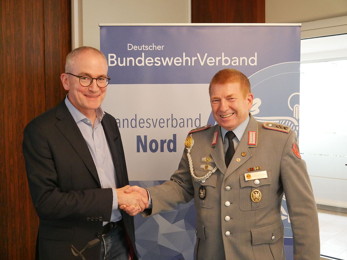 Till Walther (links) wurde vom Tagungsleiter Stabsfeldwebel a.D. Gerd Dombrowski begrüßt. Foto: DBwV