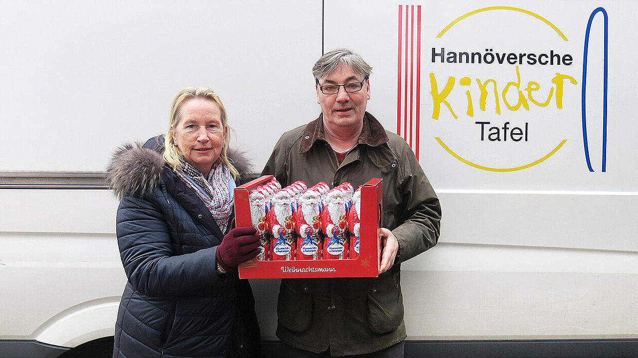„Die Weihnachtsleckereien werden gleich am Donnerstag und Freitag mit ausgegeben“, freut sich Horst Walter Gora von der Leitung der Hannöverschen Tafel (rechts). Foto: Obermaat Michelle Pleye