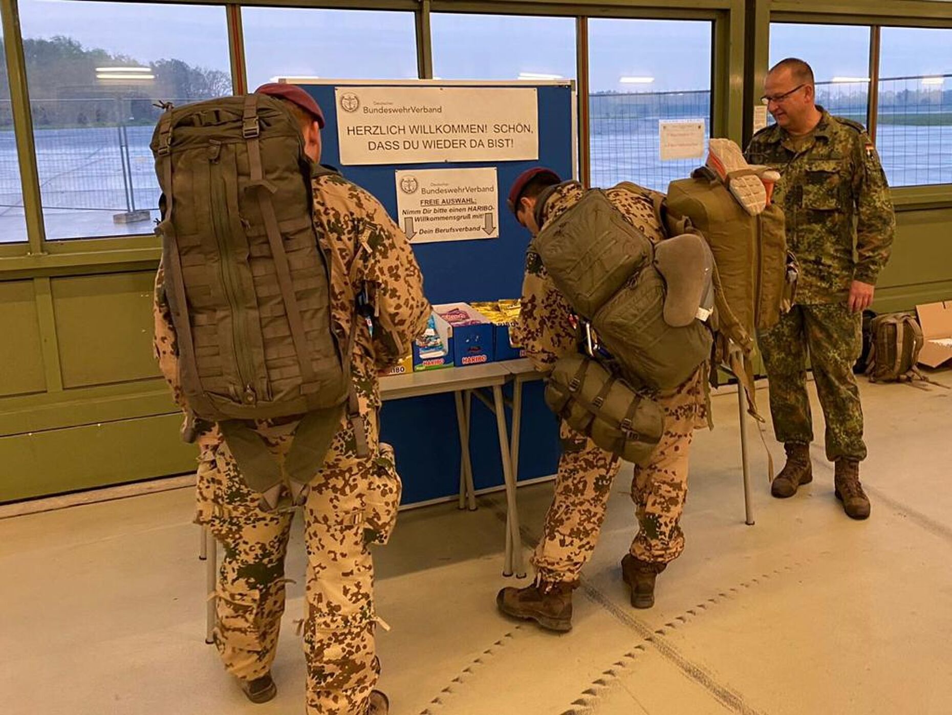 Celle. Eine kleine Aufmerksamkeit hielt der Landesverband Nord für Beteiligte der Evakuierungsmission aus dem Sudan (MilEvacOp Sudan) bereit. Dies geschah am Drehkreuz Celle, von dem aus die Soldatinnen und Soldaten nach der erfolgreichen Aktion ihre Heimreise antraten. Die Truppe war aus Jordanien über Wunstorf zurückgekehrt und konnte nun auf dem Weg in die Heimatstandorte ein paar Süßigkeiten mitnehmen. Mit diesem „1600 Mal kleinen Dankeschön“ zeigte der DBwV wieder einmal, dass er an der Seite der Soldatinnen und Soldaten steht und sie immer im Blick behält. Die Aktion wurde durch das Engagement Celler Mandatsträger unkompliziert und schnell möglich gemacht.