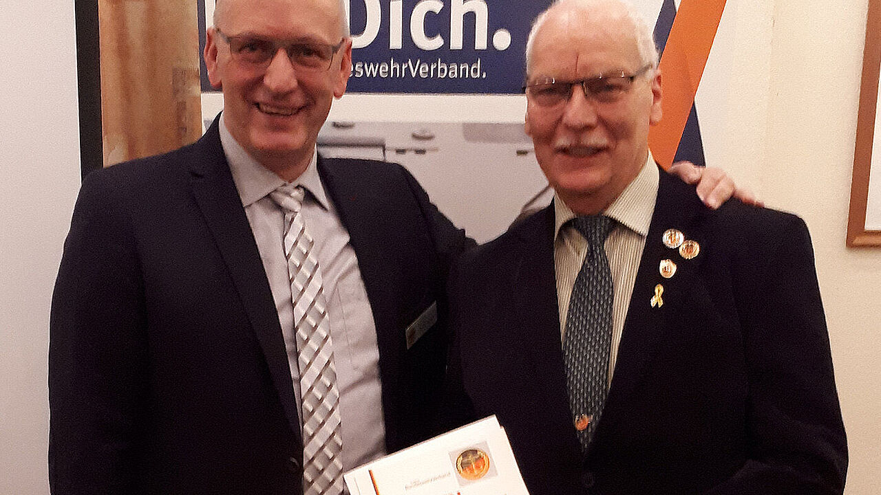 Schenkel überreichte Hegemann die Ehrenurkunde und steckte ihm die Verdienstnadel an.