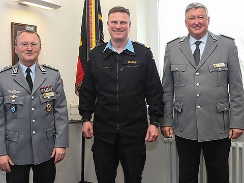 v.l.: Hauptmann Christopher John (StoKa), Oberstabsfeldwebel Dieter Salwik-(TAusbZLw), Hannes Dreier und Oberstabsfeldwebel Jochen Labod-TruKa (TrspHubschrRgt). Foto: LV Nord