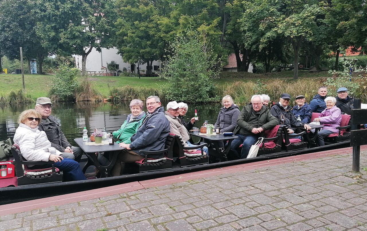 Nach einem gemeinsamen Mittagessen erfolgte dann die Verlegung zum Kahnhafen / Kornspeicher, um dort einen Kahn zu besteigen, mit dem man anschließend eine sehr geruhsame Fahrt im Hochwald sowie durch den Schlosspark von Straupitz erleben konnte.