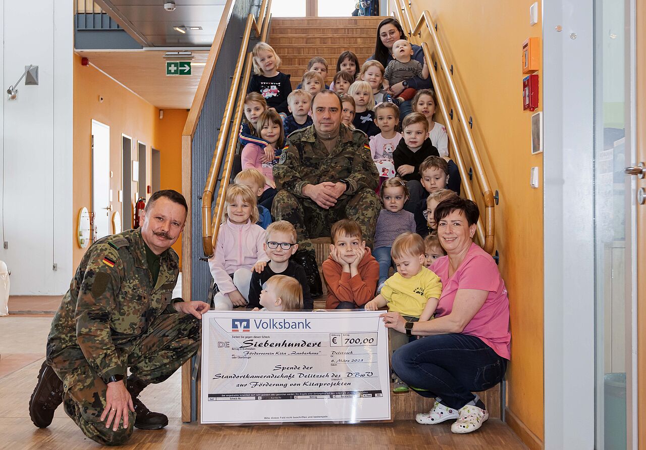 Anfang März 2023 die Standortkameradschaft (StOKa) Delitzsch einen Spendenscheck in Höhe von 700 Euro an den Kindergarten Zauberhaus übergeben.