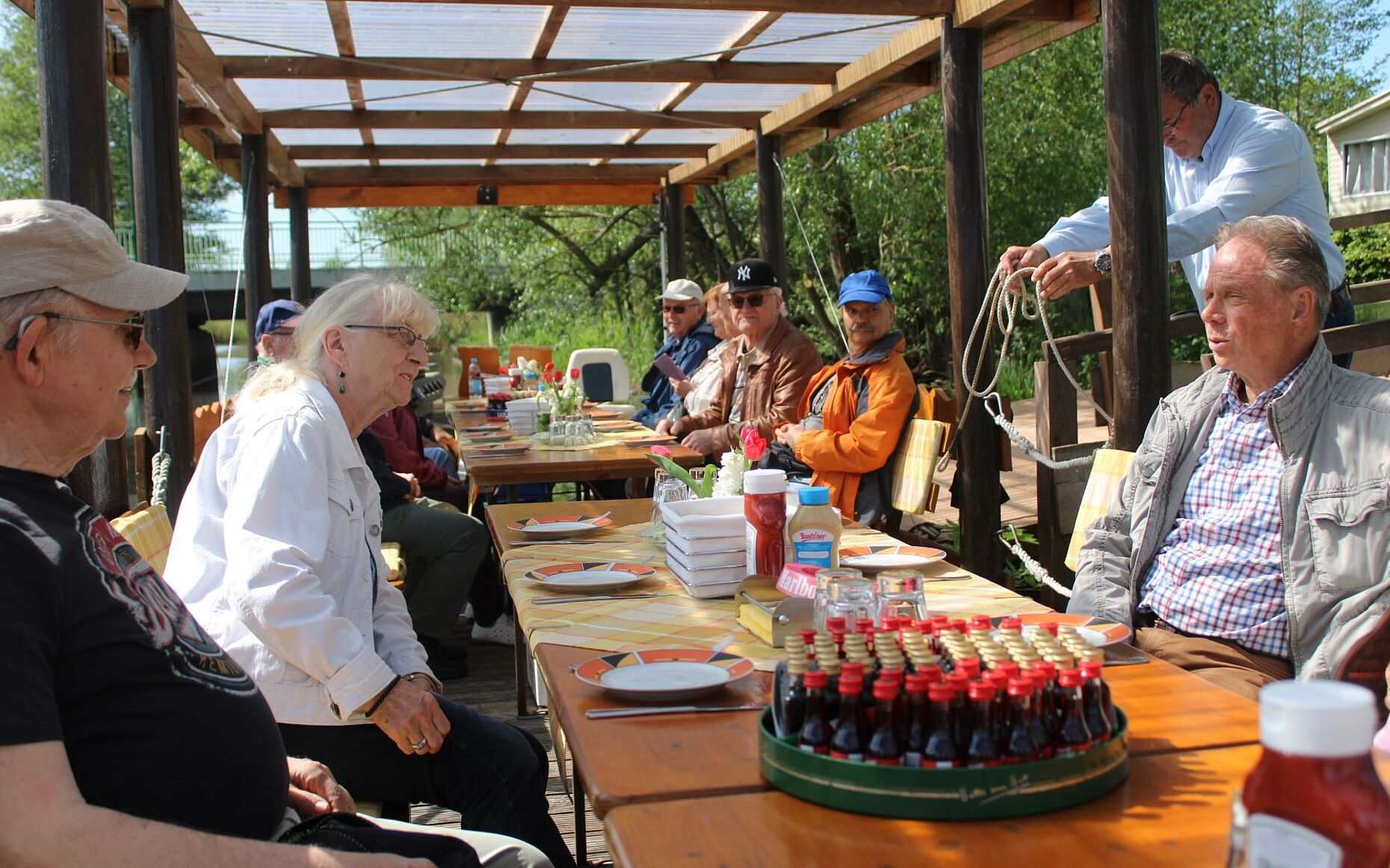 Dort angekommen, erläuterte der Floßkapitän die Faszination des Naturschutzgebietes, zeigte den Kameradinnen und Kameraden verschieden Vogelarten und auch Biberburgen waren zu sehen. Nebenbei gab es viele anregende und interessante Gespräche zur großen Weltpolitik.