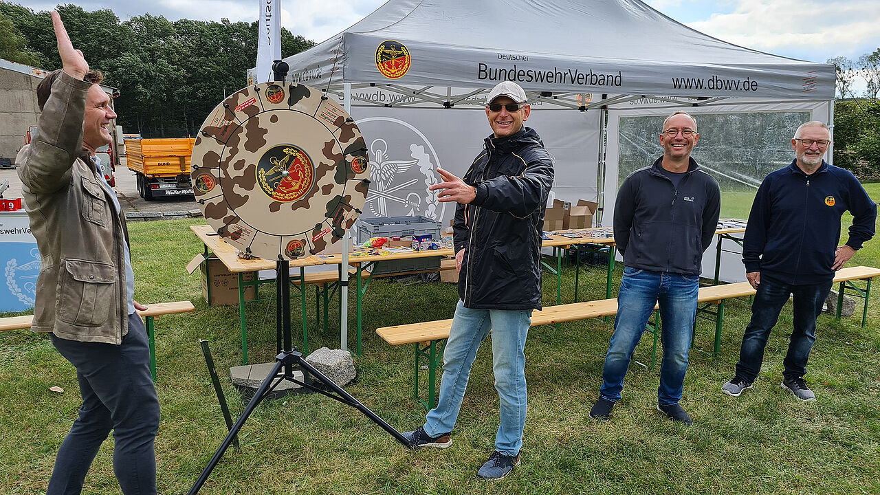 Mit dem klassischen Glücksrad, das wie immer eine geradezu magnetische Anziehungskraft auf die Kinder ausübt, hatte der Vorsitzende der TruKa, Oberstabsfeldwebel Ronny Schumann, voll ins Schwarze getroffen. So riss der Andrang derer, die ihr Glück beim Schießen versuchen wollten, während der gesamten Veranstaltung nicht ab. Stolz präsentierten vor allem die Kinder ihre Gewinne, die sie am Glücksrad ergattern konnten.