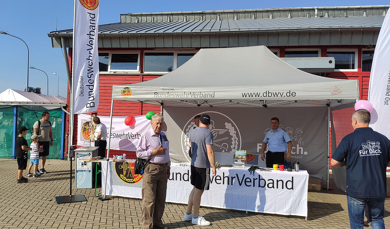 Bereits kurz nach Öffnung der Kasernentore kamen die ersten Besucher an den Stand des DBwV. Foto: Rainer Riedel