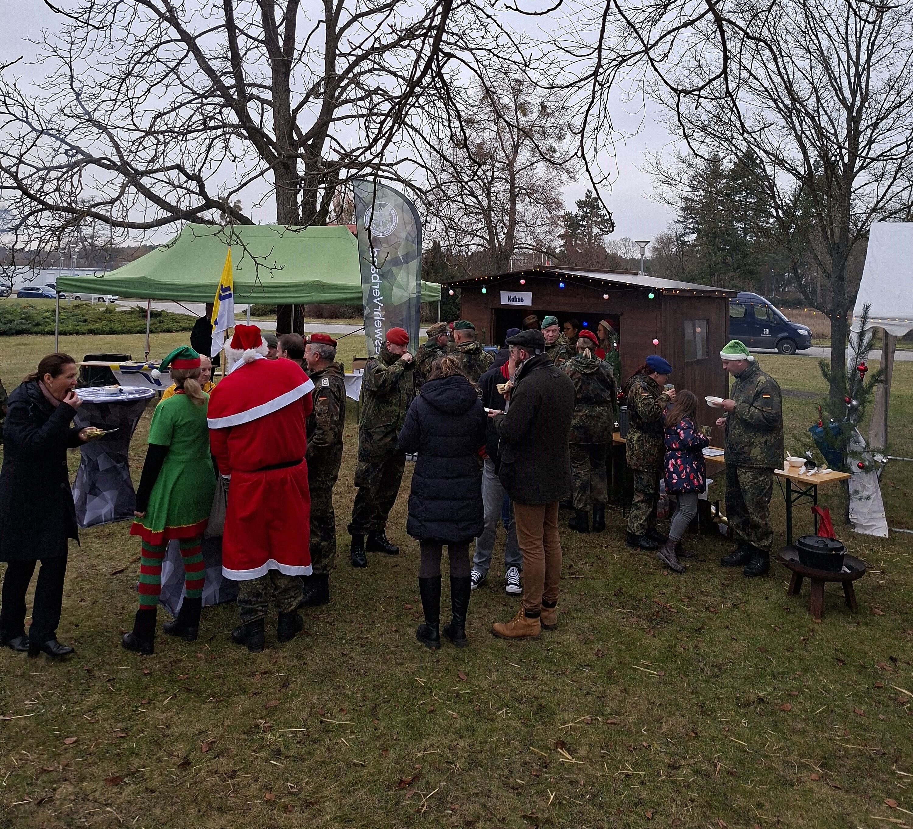 Wenn der Platz vor dem Gebäude, in dem der Inspekteur des Heeres seine Diensträume hat, liebevoll in einen Weihnachtsmarkt verwandelt wird, dann ist es an der Zeit, dass die Angehörigen des KdoH und deren Familien bei Glühwein, Punsch und warmen Kakao auf ein ereignisreiches Jahr zurückschauen und die Weihnachtszeit endgültig einläuten. In diesem Jahr spiele sogar das Wetter mit, was für zahlreiche Teilnehmende an der Jahresabschlussfeier sorgte.