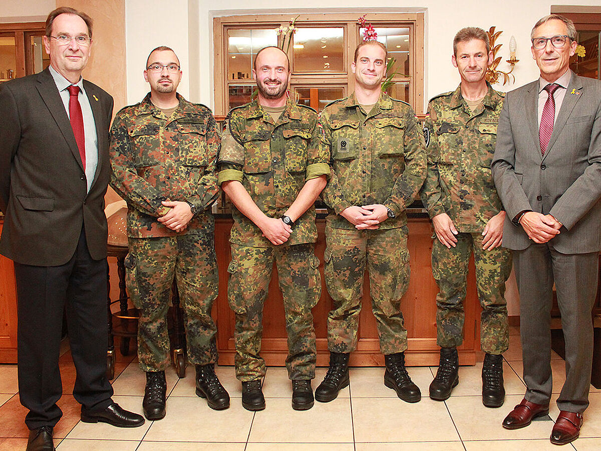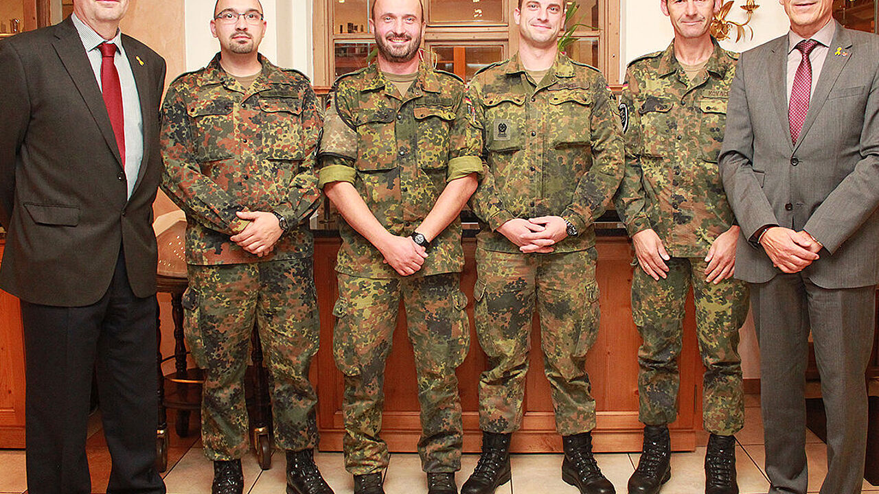 Hauptmann a.D. Walter Teßler, Stabsunteroffizier Andreas Kuhnert, Major Josef Oswald, Oberstabsgefreiter Nikolaus Runkel, Hauptmann Alexander Kovacevic, Stabsfeldwebel a.D. Gerhard Stärk (v.l.)