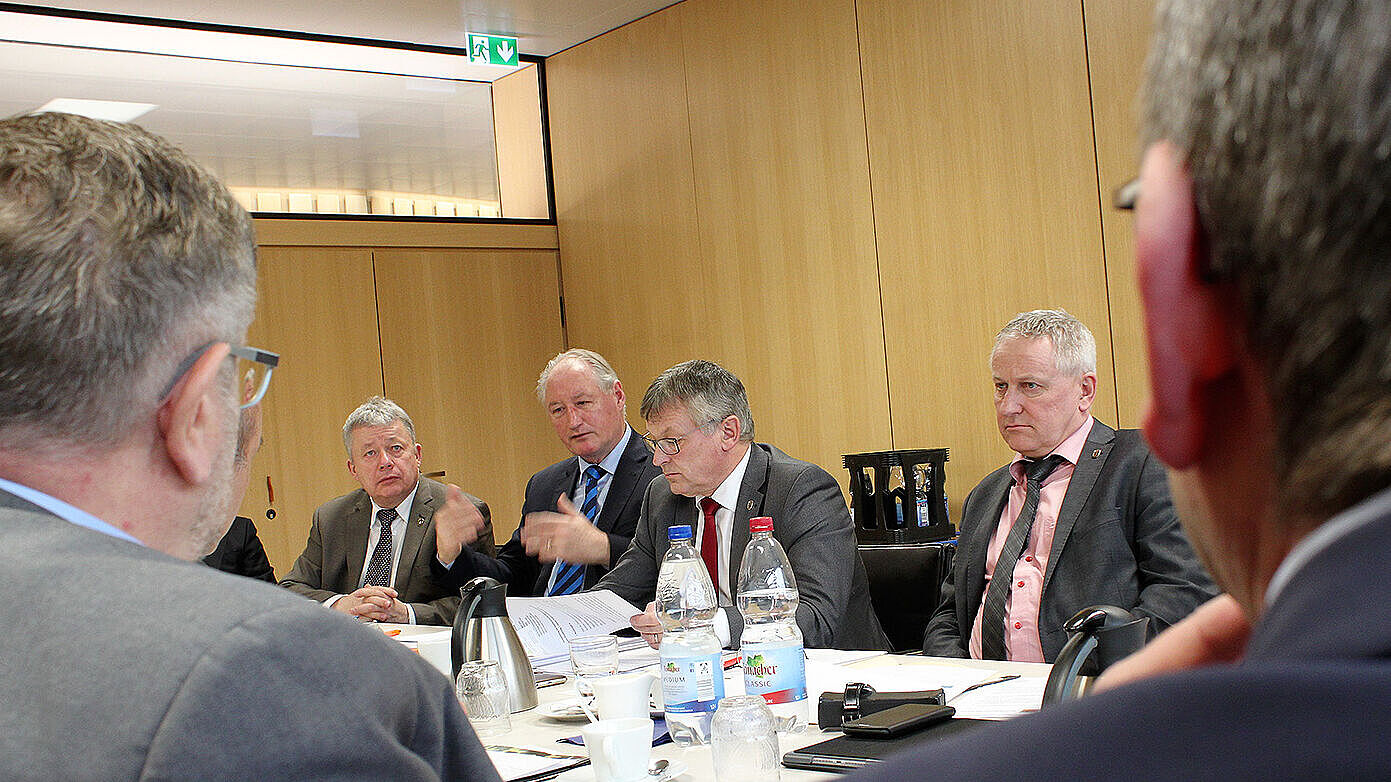 Teilnehmer des Gesprächs von Abgeordneten der CDU-Landtagsfraktion und Vertretern des Landesvorstands Süddeutschland mit Stv. Fraktionsvorsitzendem, Thomas Blenke (CDU) und Landesvorsitzendem Stabsfeldwebel a.D. Gerhard Stärk (vorn 2. und 3. v.l) Foto: DBwV/IK
