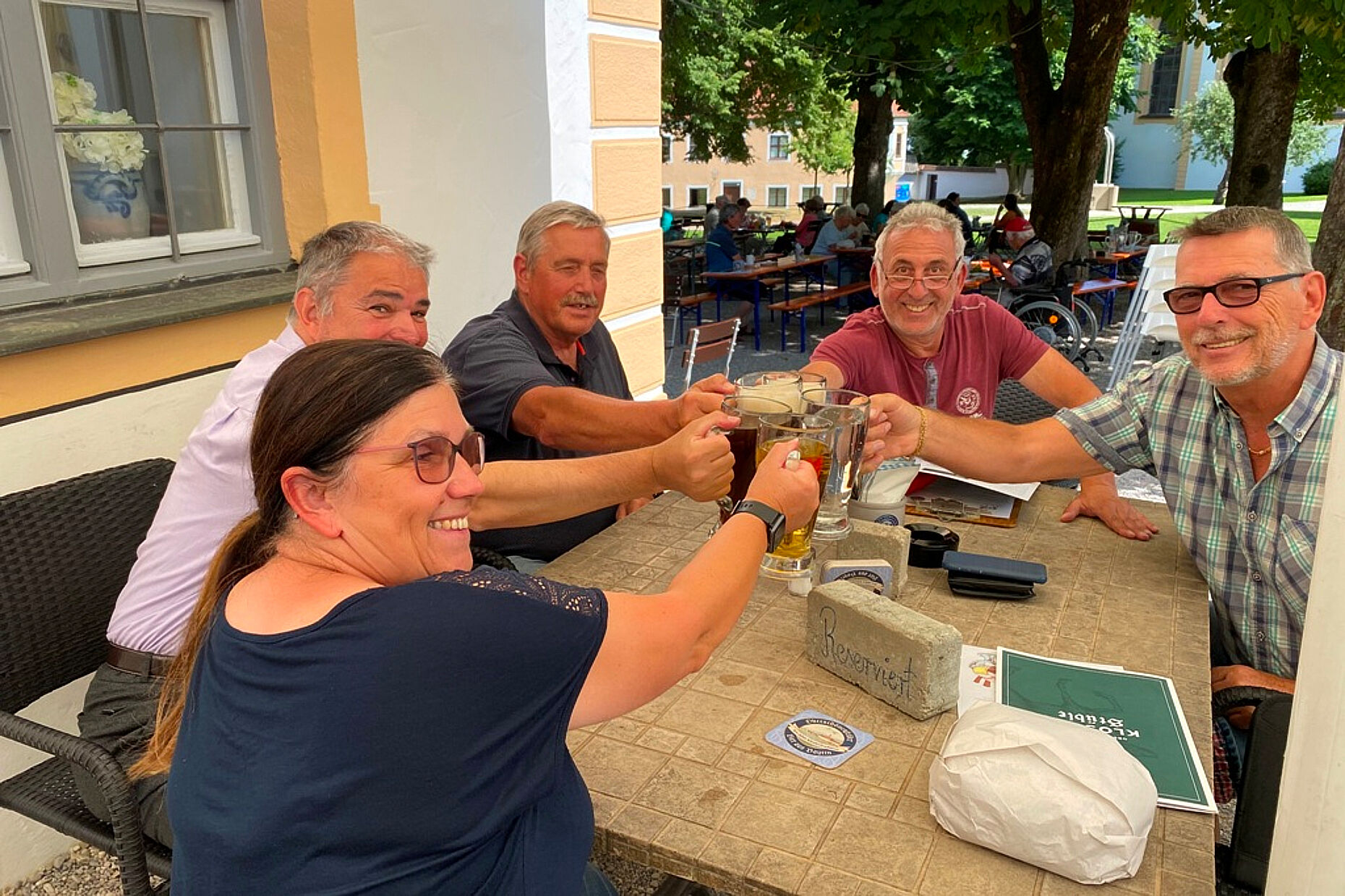 KERH-Vorsitzender Stabsfeldwebel a.D. Michael Lipp lud deshalb im Anschluss zum monatlichen Stammtisch in den Biergarten von Oberschönenfeld, um sich dort bei einer Brotzeit mit bayerischen Schmankerln von der Qualität des Brotes aus dem Kloster zu überzeugen.