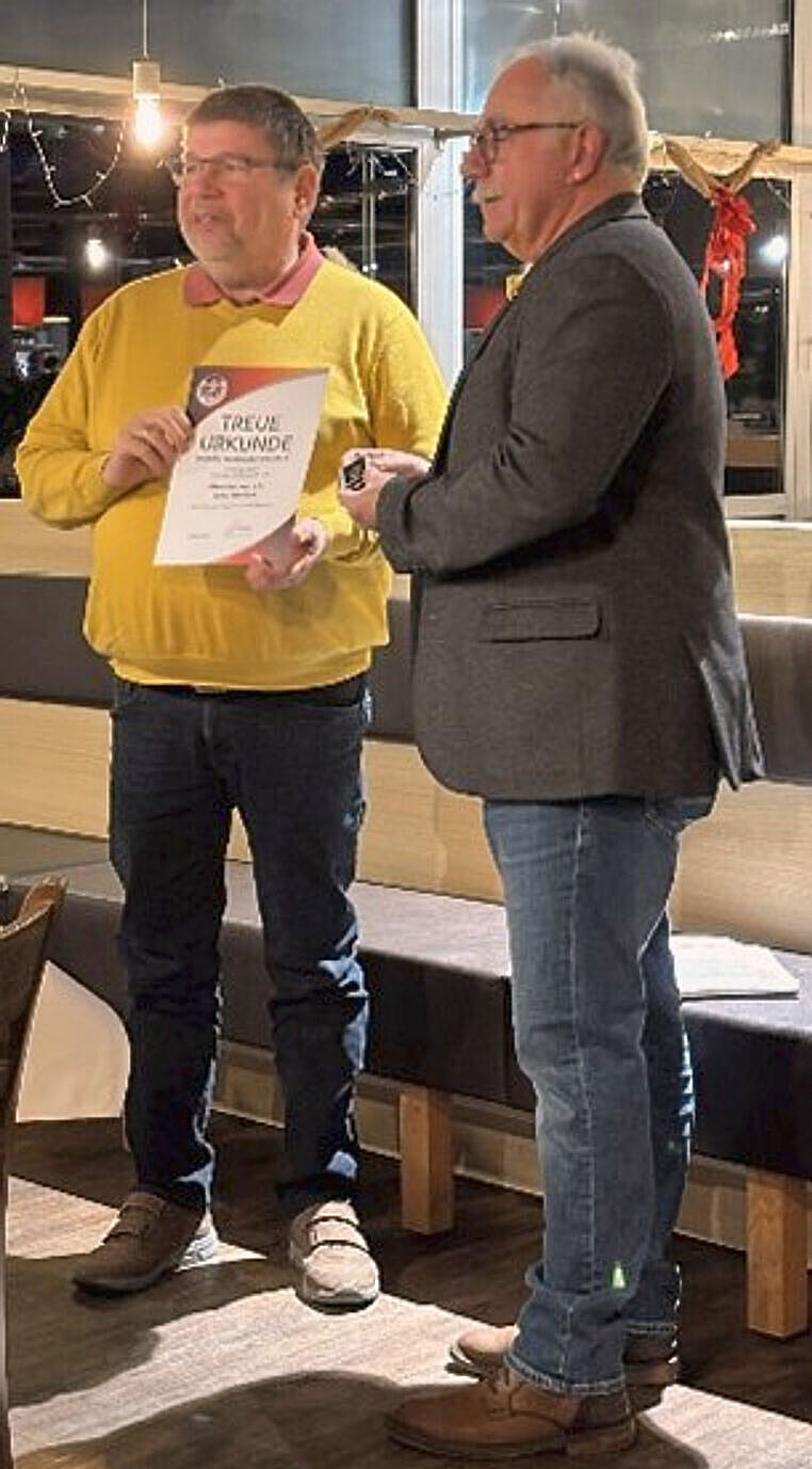 Als erster Geehrter der Kameradschaft in diesem Jahr freute sich Oberstleutnant a.D. Elmar Schiffers über die Auszeichnung für 25 Jahre Mitgliedschaft im DBwV.
