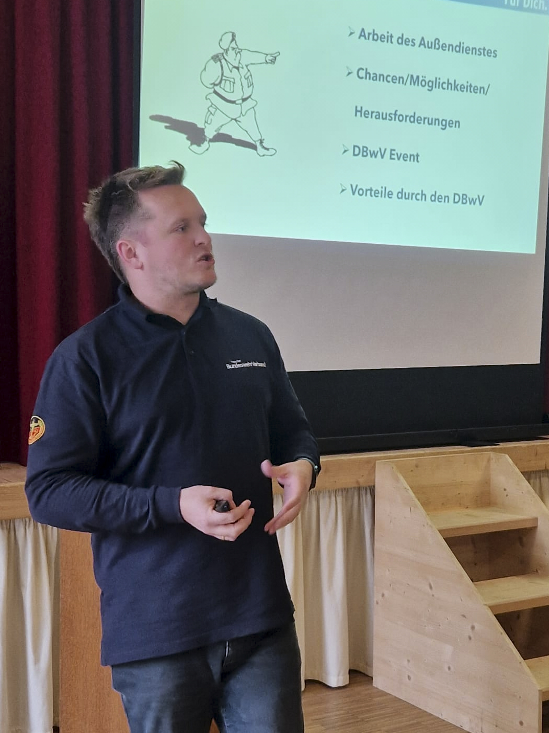 Oberleutnant d.R. Sebastian Frey berichtete über die Arbeit des Außendienstes im Landesverband Süddeutschland, die vor allem auf Mitgliedergewinnung und Information der aktiven Truppe ausgerichtet ist. Besonders beliebt sind die neu eingeführten „Eventveranstaltungen“, für die der DBwV Sonder-MEM bereitstellt. Diese Angebote stoßen bei der Truppe auf große Resonanz und können auch von KERH beantragt werden – vorausgesetzt, die Möglichkeit zur Mitgliedergewinnung ist gegeben.