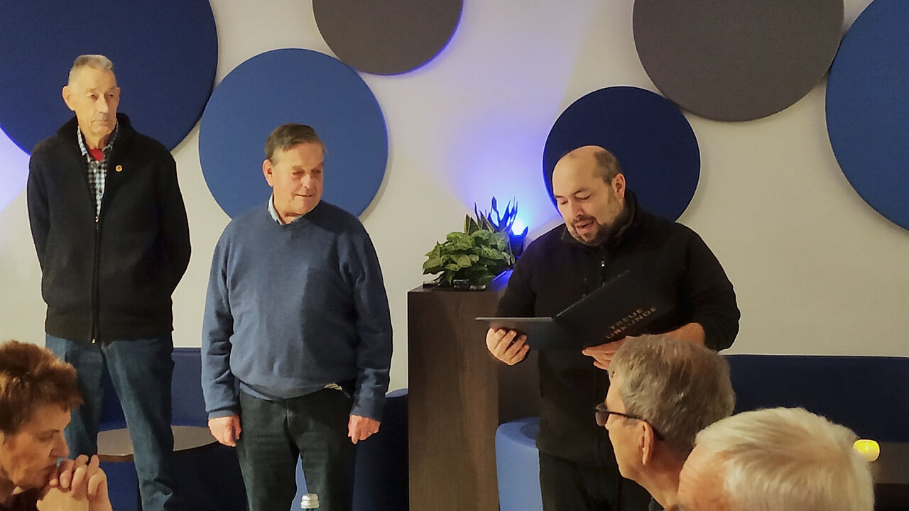 Oberstabsfeldwebel a.D. Hartmut Gornich und Oberstleutnant d.R. Manfred Horneber für 40 Jahre Mitgliedschaft,