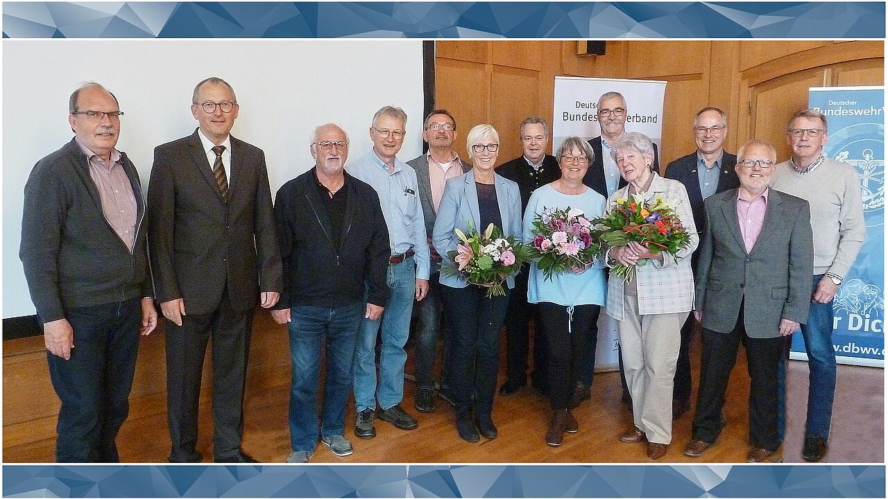 Dem Vorschlag des stellvertretenden Vorsitzenden Ambrosius, den ehemaligen Vorsitzenden Reinhard Krömer zum Ehrenvorsitzenden der Kameradschaft zu ernennen, folgten die Mitglieder. Mit einem Blumenstrauß wurde Irene Eder nach über 20 Jahren als Beisitzerin aus dem Vorstand verabschiedet. Mit Ehrungen für 25 Jahre Mitgliedschaft im BundeswehrVerband für Hauptmann a.D. Hans-Dieter Kaufmann, Hauptmann a.D. Siegfried Gebler und Kapitänleutnant Rolf-Michael Halatta sowie für 60 Jahre Mitgliedschaft für Hauptmann a.D. Dietrich Türk und Oberstabsfeldwebel a.D. Edgar Schoppmann endete die Versammlung.