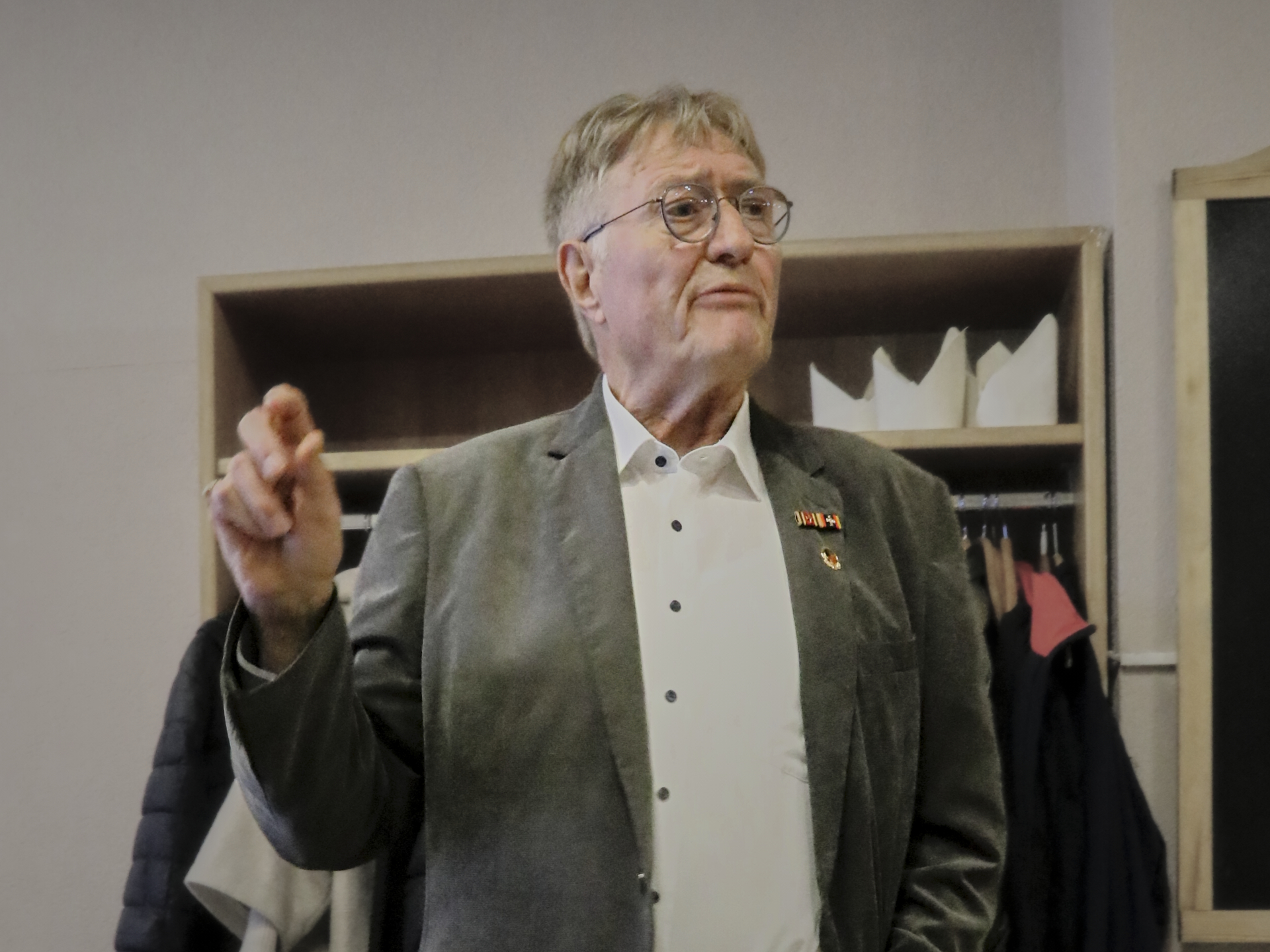 Der Höhepunkt des Abends war der Vortrag von Oberstleutnant a.D. Hans-Dieter Overweg. Als ehemaliger Referatsleiter für Außen- und Sicherheitspolitik im Presse- und Informationsamt der Bundesregierung gewährte er faszinierende Einblicke in die Informationsarbeit der Regierung am Beispiel der Sicherheitspolitik. Overweg berichtete von seiner fast siebenjährigen Tätigkeit im Amt, die er im Auftrag des Bundesministeriums der Verteidigung in ziviler Funktion ausübte – und das für zwei Bundeskanzler unterschiedlicher Parteien in Bonn und Berlin.