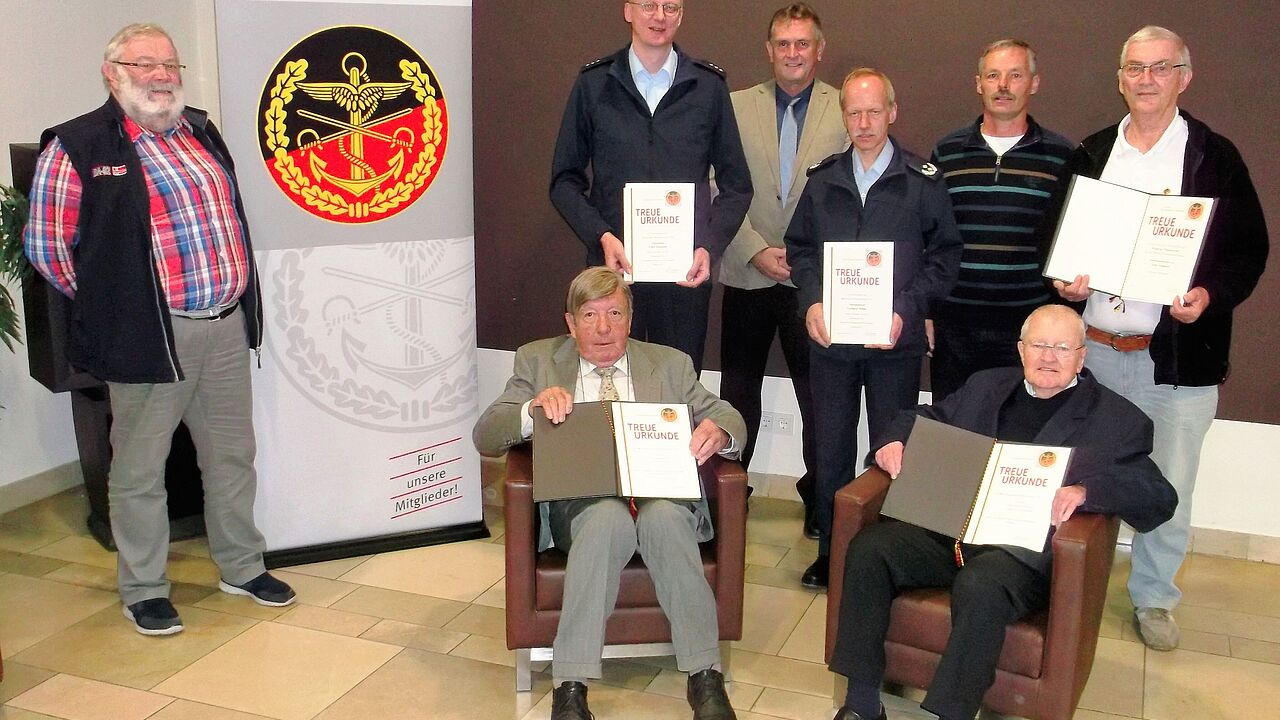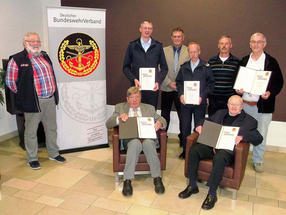 2. Reihe (v.l.n.r.): Wolfgang Schulze-Thummes, Falko Rampolt, Bernhard Hauber, Gerhard Mihm, Robert Wechsler, Kurt Pompiati. 1. Reihe: Helmut Frank, Friedrich Lindemann Foto: DBwV