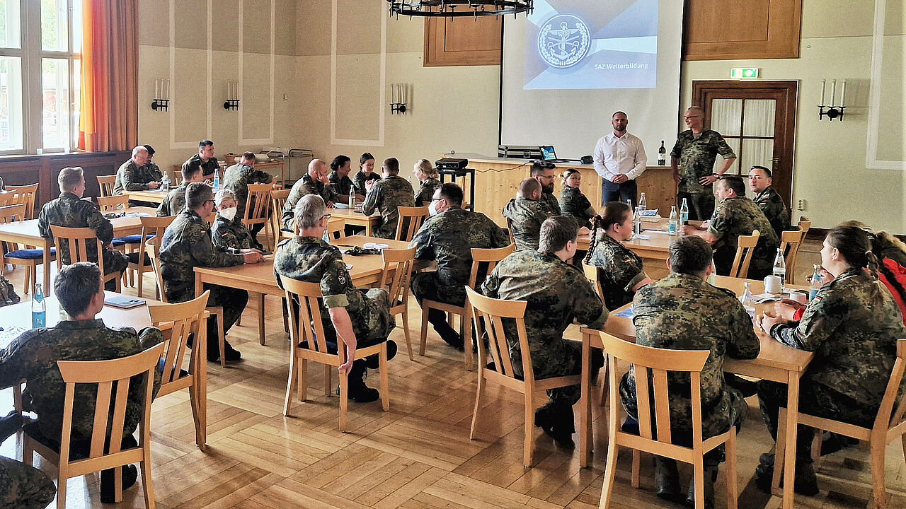 Auf Anregung des Kommandanten Stabsquartier der Schule ABC-Abwehr und Gesetzliche Schutzaufgaben, Hauptmann Thomas Taupp, organisierte die Sonthofener TruKa unter Vorsitzendem Ralf Onody Mitte Juni eine Informationsveranstaltung speziell für Soldaten auf Zeit zum Thema „Gesetzliche Rentennachversicherung“. Schulkommandeur Oberst Volker Quante unterstrich in seiner Begrüßung, dass sich jeder Soldat auf Zeit frühzeitig Gedanken um seine Zukunft nach der Dienstzeit bei der Bundeswehr machen sollte. Hierfür die notwendige Unterstützung und die erforderlichen Informationen auch unter Nutzung der Weiterbildungsangebote vom DBwV zu geben, sei ihm deshalb wichtig.