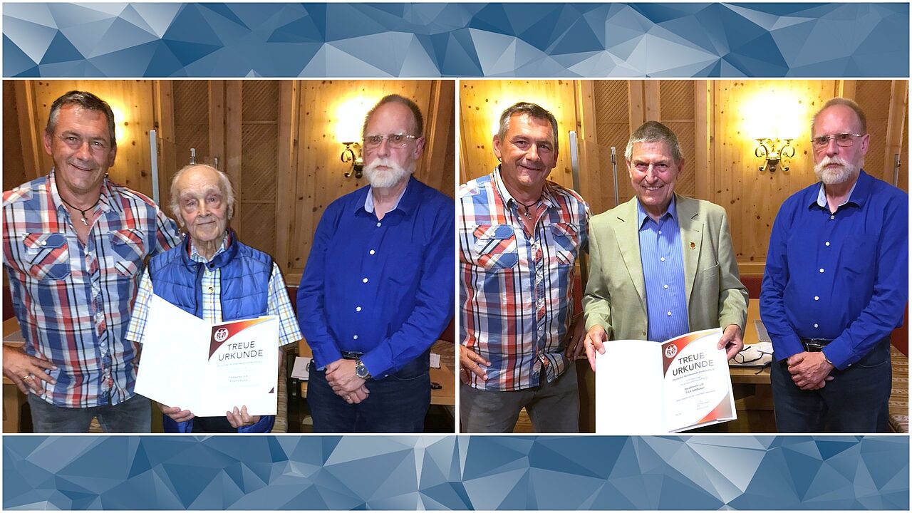 Kothmayr und der Ehrenvorsitzende der Kameradschaft, Oberstabsfeldwebel a.D. Heinz Mischmasch, zeichneten Feldwebel d.R. Roland Rohm für seine 60-jährige Mitgliedschaft und Hauptmann a.D. Erich Spitlbauer für 50 Jahre Mitgliedschaft im BundeswehrVerband aus. Beide erhielten dafür die Urkunden und Ehrennadeln.