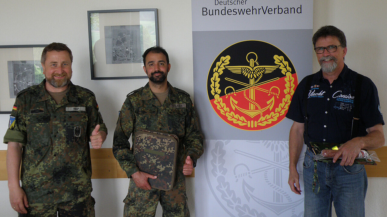 TruKa-Vorsitzender Stabsfeldwebel Stefan Riep, Stabsunteroffizier Mounir Satlaoui und Arbeitnehmer Ralf Heisin (v.l.) Foto: Kolk