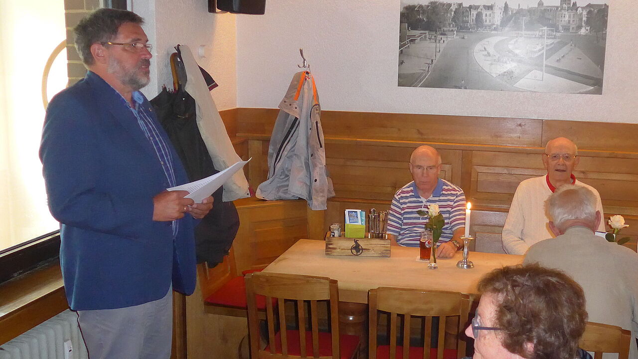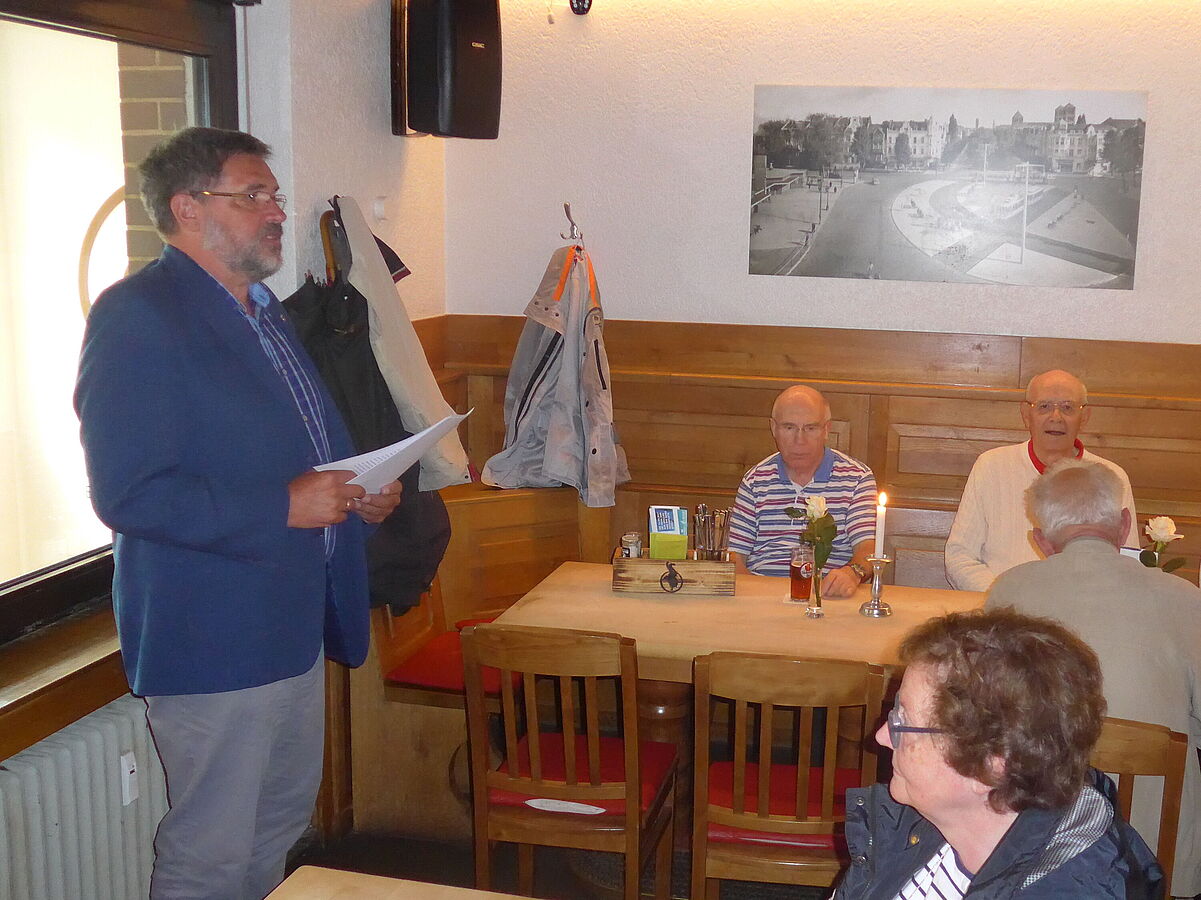 Ehrengast war der Landesvorsitzende Ehemalige im Landesverband West, Ernst Wendland, der von seiner Frau begleitet wurde. Wendland überbrachte die Grüße des Landesvorsitzenden Thomas Sohst und sprach die gegenwärtigen Schwerpunkte der Verbandsarbeit mit besonderem Blick auf die bevorstehende Hauptversammlung im November in Berlin an.